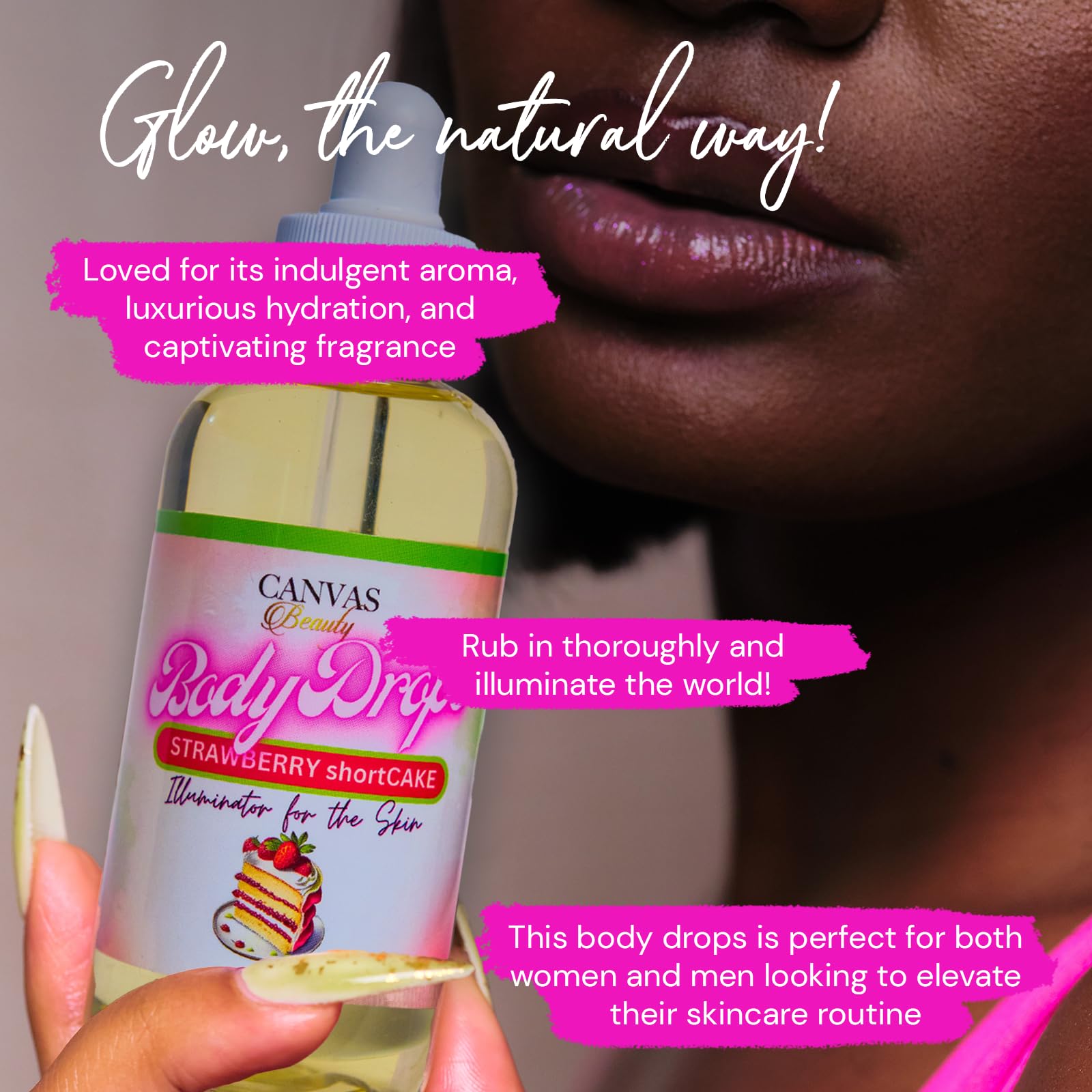 Canvas Beauty Body Drops, Strawberry Short Cake - With Coconut Oil, Jojoba Oil & Vitamin E