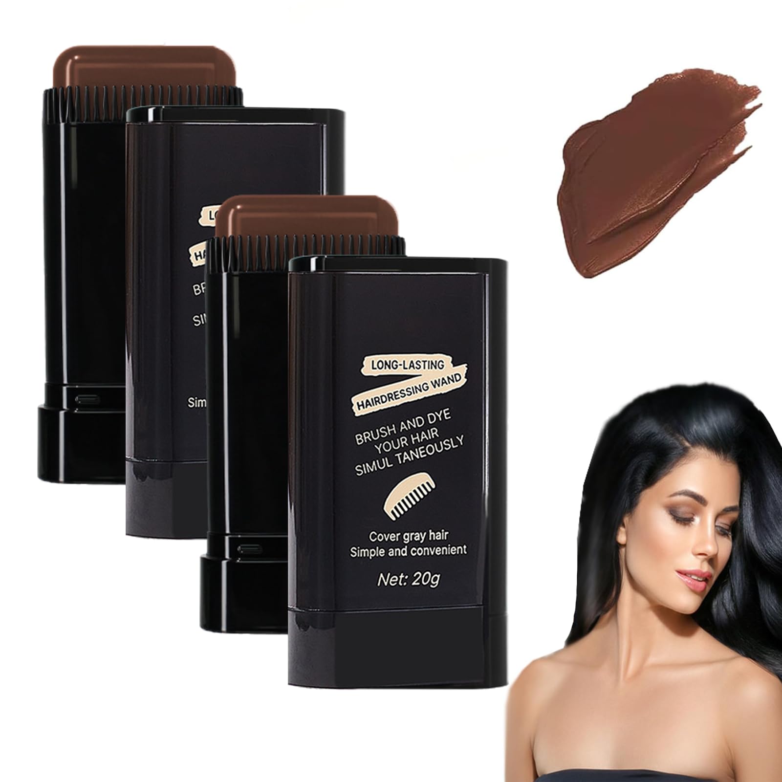 Details: White Hair Concealer Stick for Women, Carylook Hair Color Comb, Water and Sweat Proof Hair Dye Stick, 2 In 1 Hair Dye Stick, Convenient Comb Hair Dye for Quick Touch Up Specification: Name: Carylook Hair Color Stick Color: Black, Black-Brown, Brown Net Weight: 20g Size: 9.3 x 4.8 x 2.2 cm/3.66 x 1.89 x 0.86in Suitable For: All Shelf Life: 3 years Storage Method: Store in a Cool and Dry Place Package Includes: 1/2Pcs * Carylook Hair Color Stick Warm Tips: 1. Please allow a slight dimension difference due to different manual measurements 2. There may be some chromatic aberration due to different shooting light problems and different display problems, please refer to the actual product