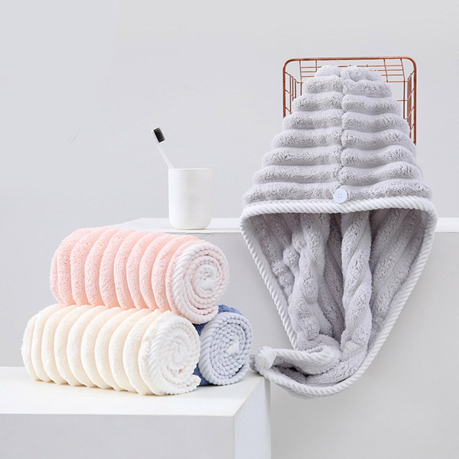 Details: Super Absorbent Hair Towel Wrap For Wet Hair, Quick Dry Microfiber Hair Towel With Button Shower Caps, Bath Accessories
