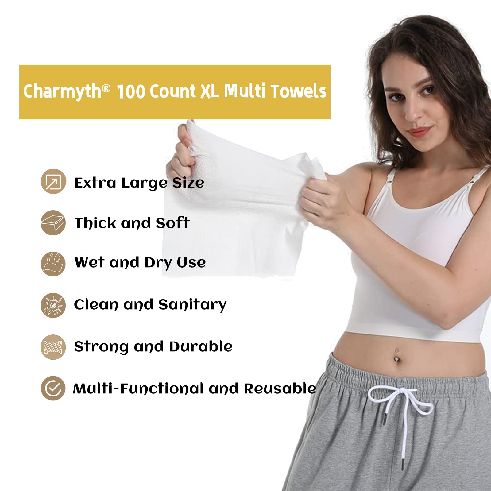 Charmyth Disposable Face Towels XL 100 Count - Extra Thick Soft Makeup Remover Wipes for Sensitive Skin Degradable Facial Cleansing Towels