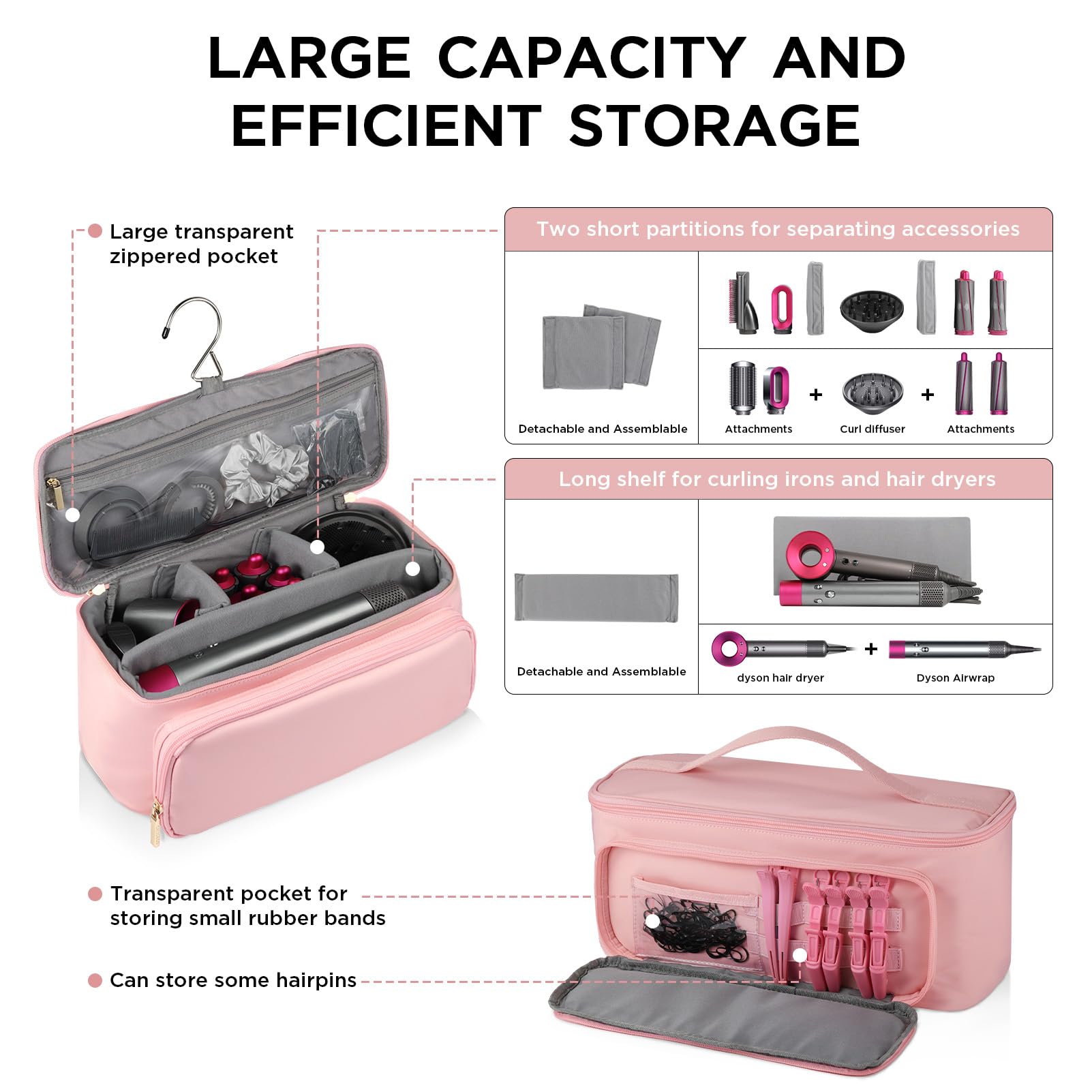 CHICECO Hair Tool Travel Bag for Shark FlexStyle Airwrap Hair Dryer and Styling Accessories Tools Storage Bag, Waterproof Travel Carrying Case Hair Tool Organizer, Gift for Women (Pink)