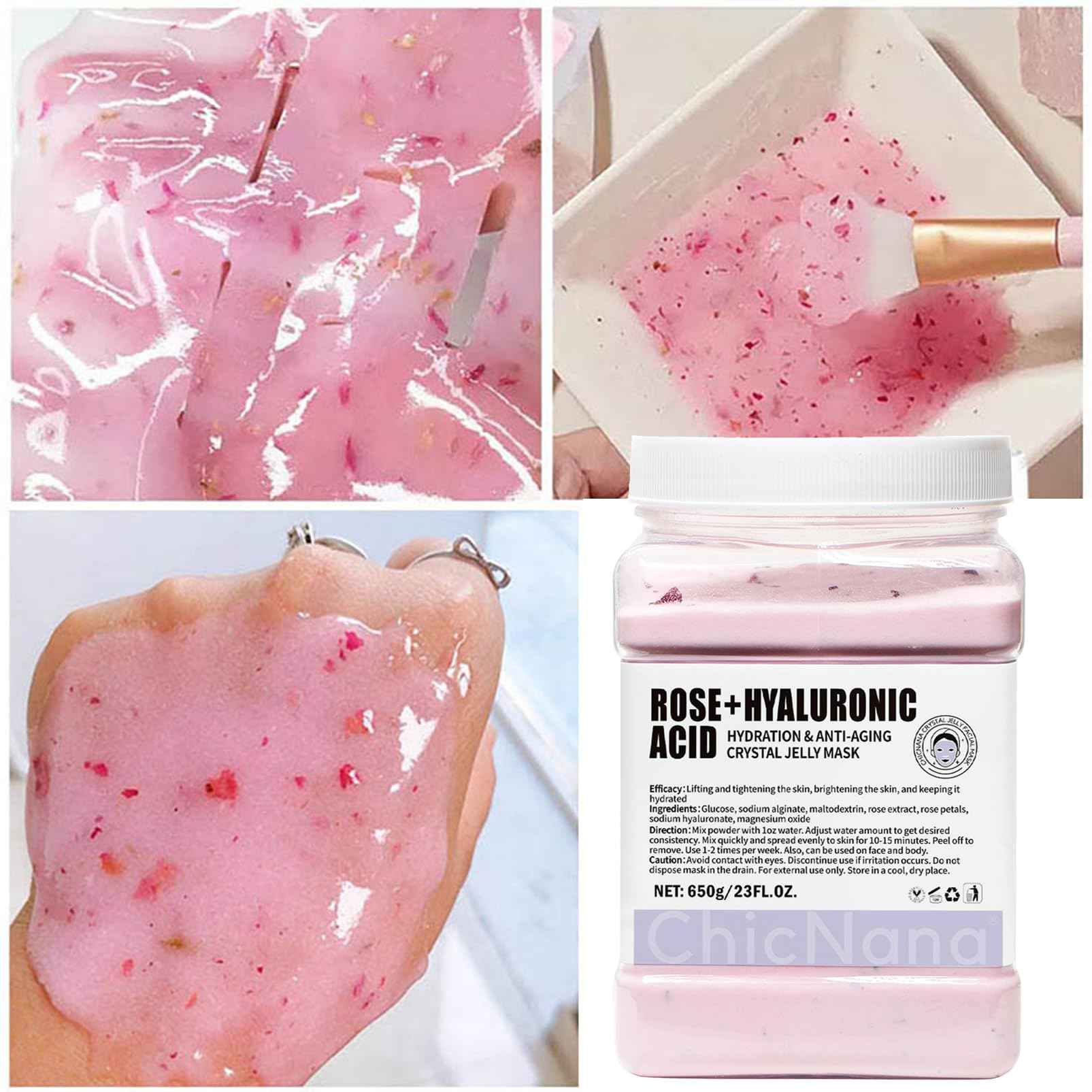 ChicNana Jelly Face Mask Peel Off Powder 650g Moisturizing and Hydrating Repair and Smooth Skin Care for Home Salon Spa (Rose Hyaluronic Acid)