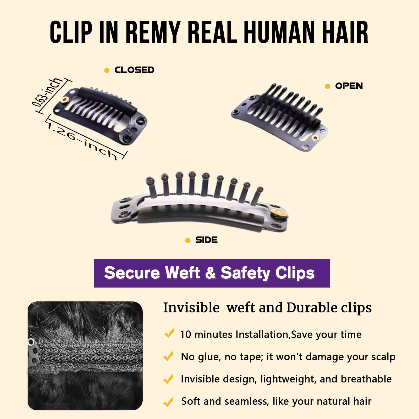 - Clip in hair extensions real human hair: handmade clip-in extensions, crafted from 100% Remy human hair. Each set includes 8 seamless wefts and 20 discreet clips for a flawless,Expertly stitched with cushioned clips that protect your scalp and hair,natural look that blends perfectly with your own hair.Ethically processed without chemical treatments, ensuring healthy,vibrant hair.No bad smell.
