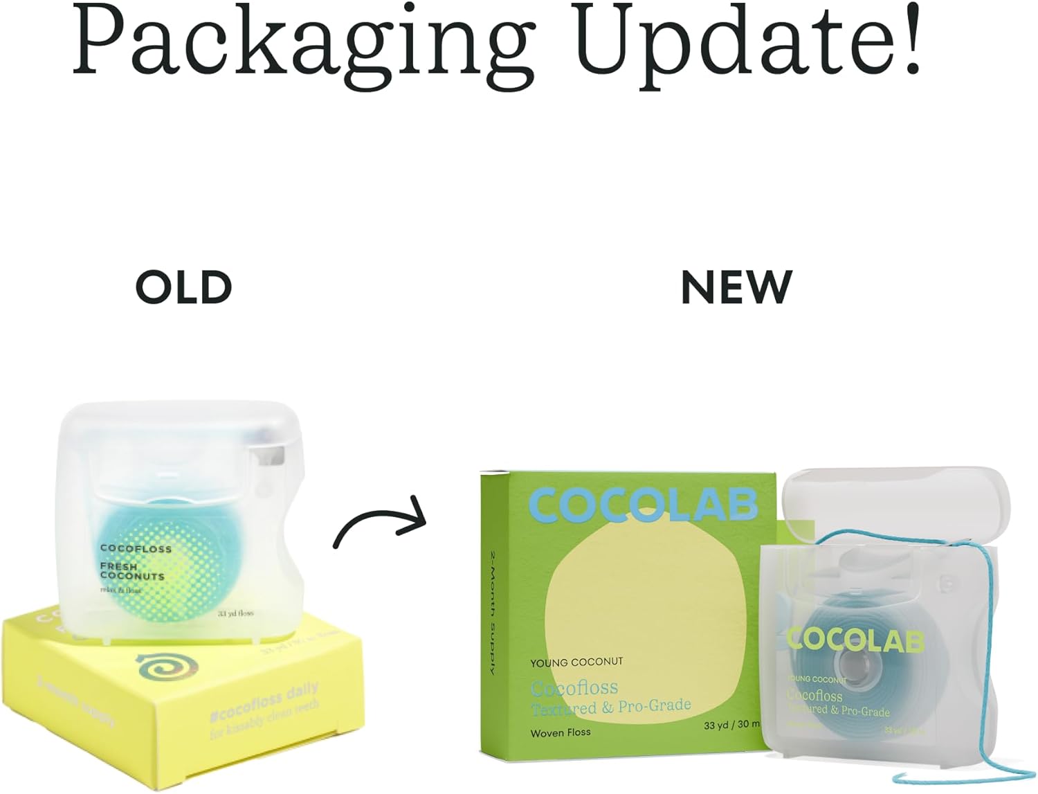 Cocolab Woven Dental Floss, Dentist-Designed Oral Care, Coconut Scent, Waxed, Expanding, Vegan, Kid-Friendly String Floss with Coconut Oil, 1 Spool (33 yd)