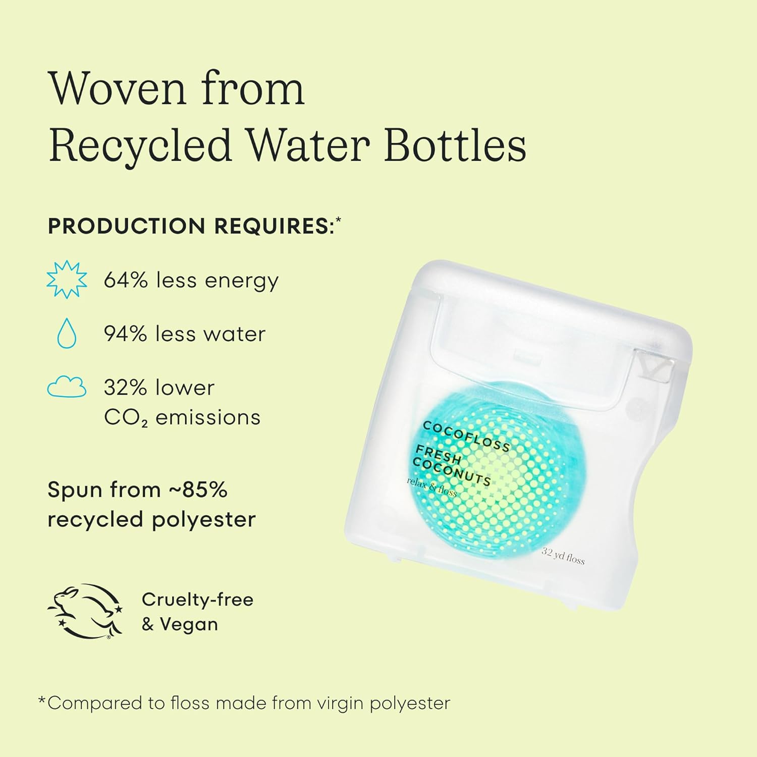 - PLANET-FRIENDLY: Woven from ~85% recycled water bottles; refillable dispenser; less waste than plastic picks and flossers; free of parabens and sulfates; no irritating flavors.