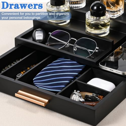 - Privacy Space: The bottom drawer of the cologne rack organizer for men can be freely divided to store small items; the hidden interlayer design allows you to safely store valuable items such as cash and documents, privately and safely