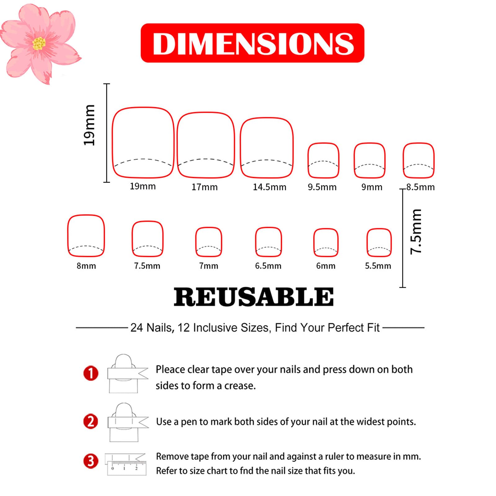 - Package Includes: 24 pieces of spring summer press on toenails, 24 pieces of double-sided jelly adhesive stickers, a nail file and a wooden stick for removing toe nail tips. Easily create a fashionable fake toenails salon