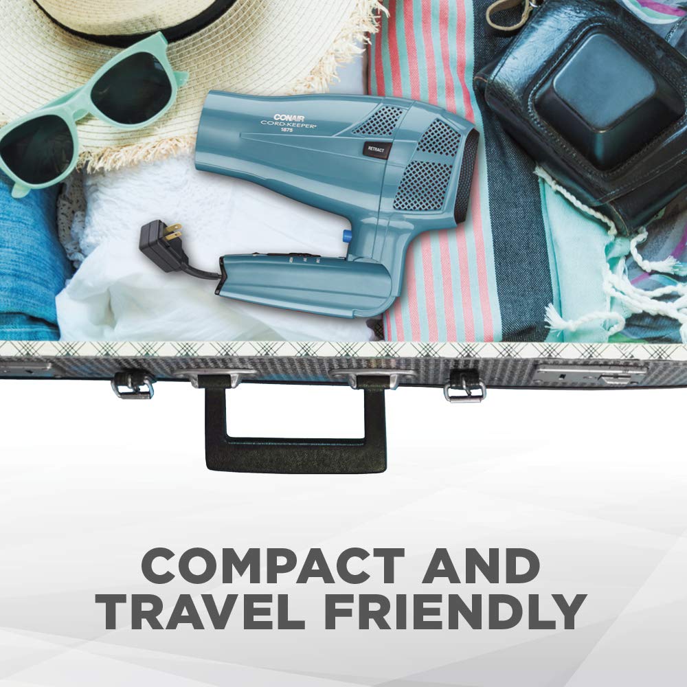 - Travel Hair Dryer: This dryer features a folding handle and a retractable cord for compact storage, making it easy to pack in a suitcase or carry-on bag or store in a drawer; With dual voltage, it's perfect for worldwide travel