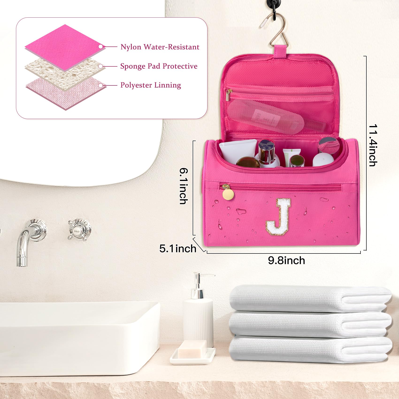 COSHAYSOO Cool First Communion Confirmation Gifts Baptism Dance Recital Trip Favor Gifts for Women Teen Girls Travel, Monogrammed Initial Hanging Toiletry Bag Waterproof Toiletries Hot Pink Letter J