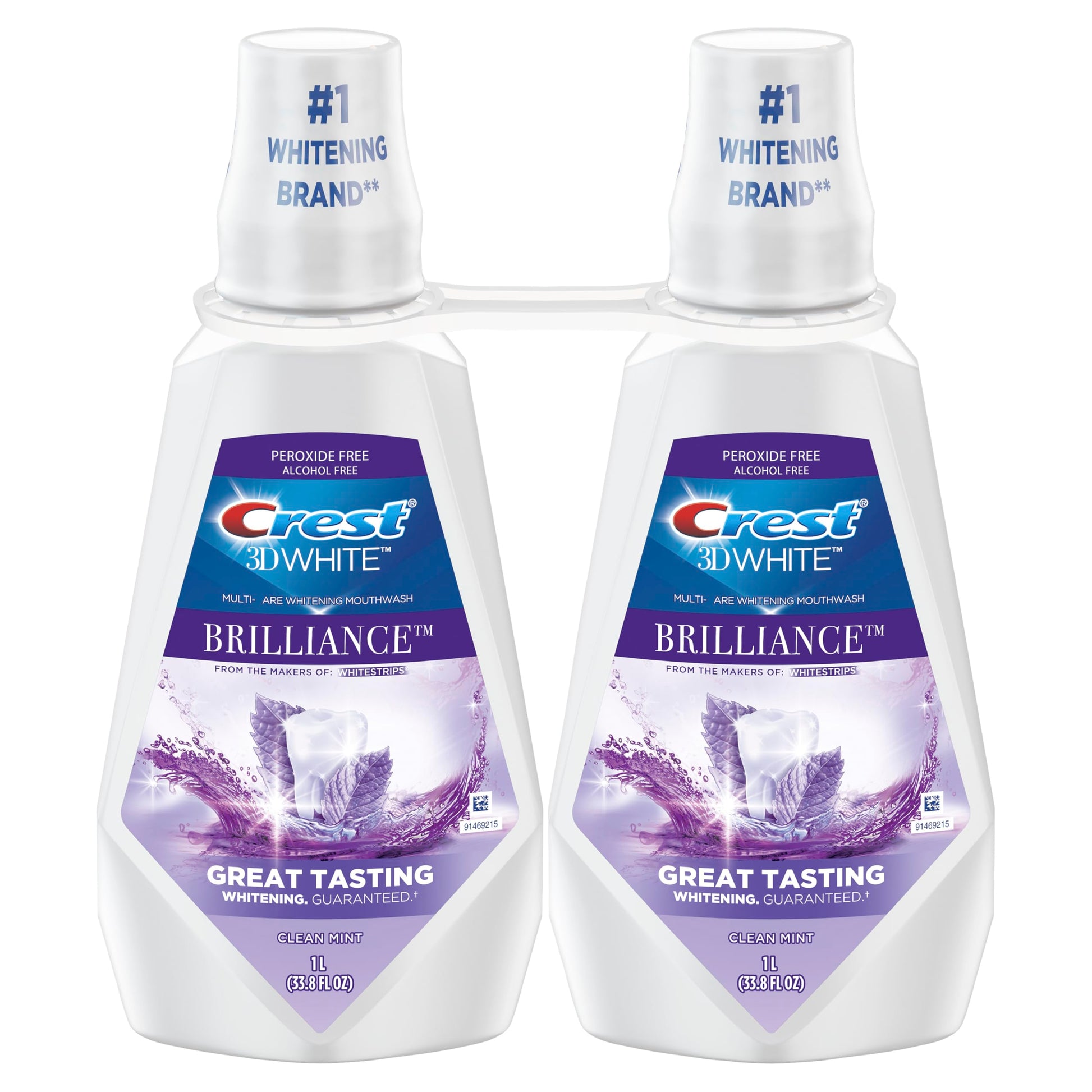 Crest Mouthwash/Mouth Rinse, 3D White Brilliance Whitening, Alcohol Free, Clean Mint, 2x1L (33.8 fl oz)
