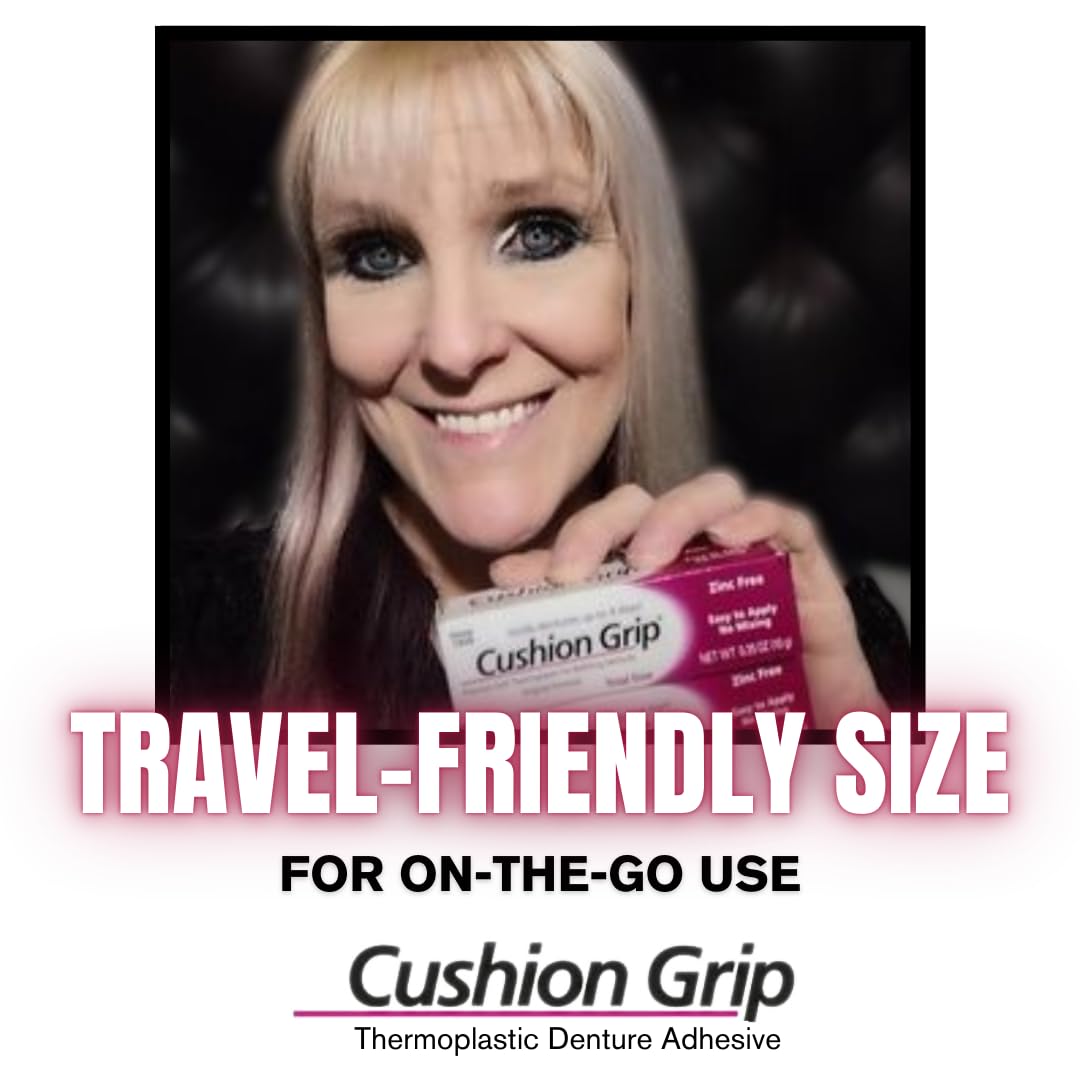 Cushion Grip Thermoplastic Denture Adhesive, 0.35 oz Travel Size | Refits and Tightens Loose Dentures On The Go | Non-Glue Adhesive, Acts Like a Soft Reliner