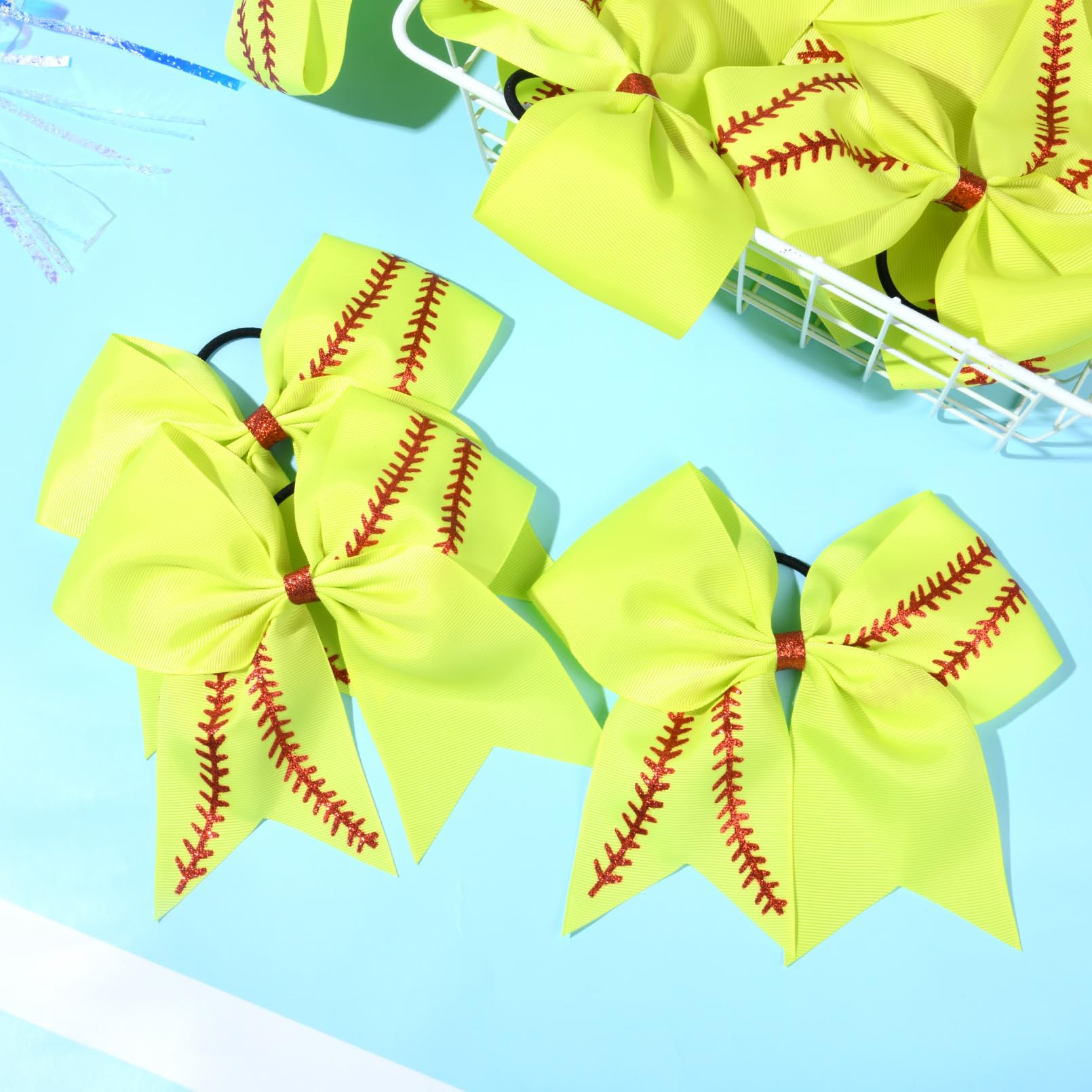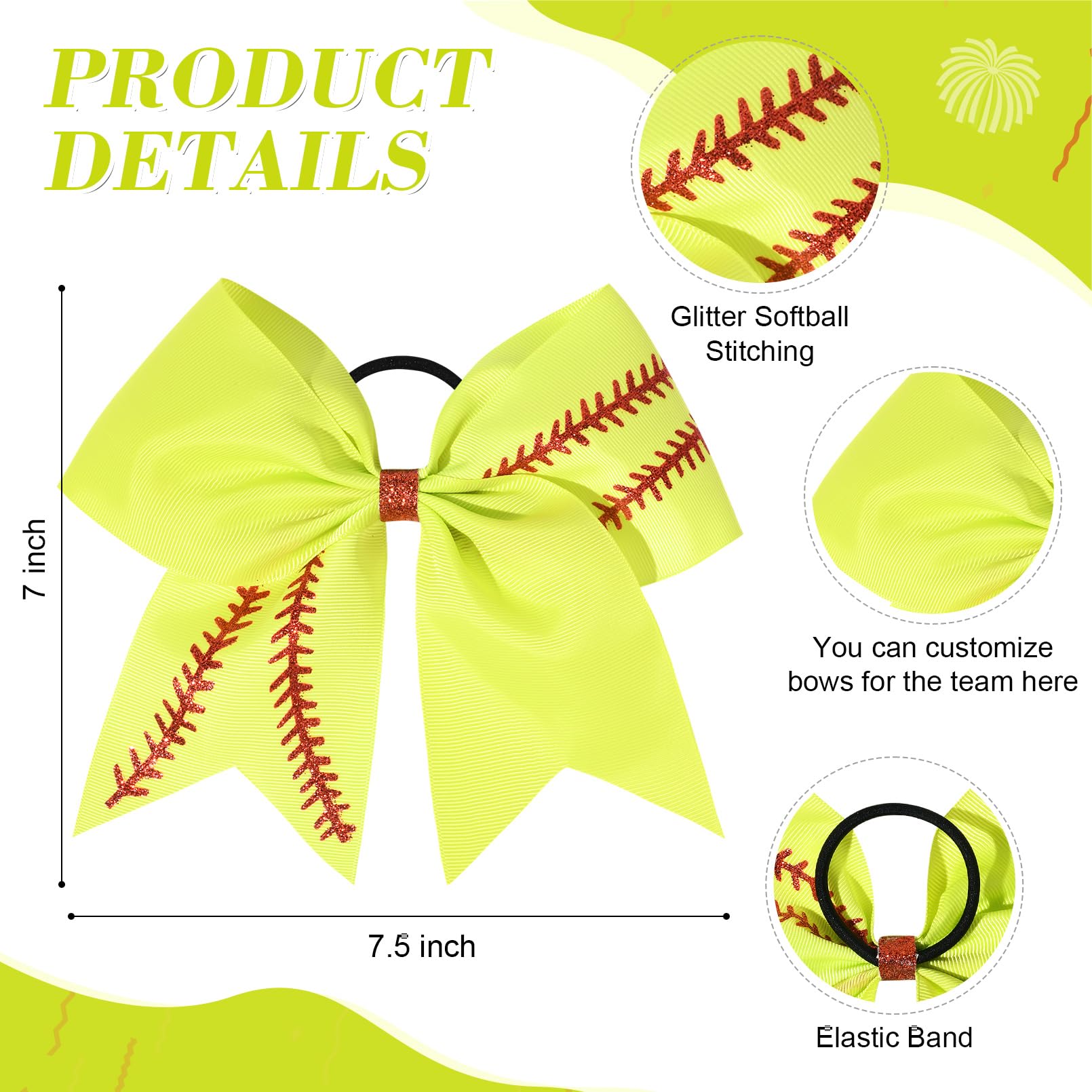 - Sparkling Softball Cheer Bows: Each bow features bold glitter softball stitching for a standout game-day look. The vibrant sparkle catches the light, making these 8-inch bows the perfect finishing touch for any cheerleader or softball player