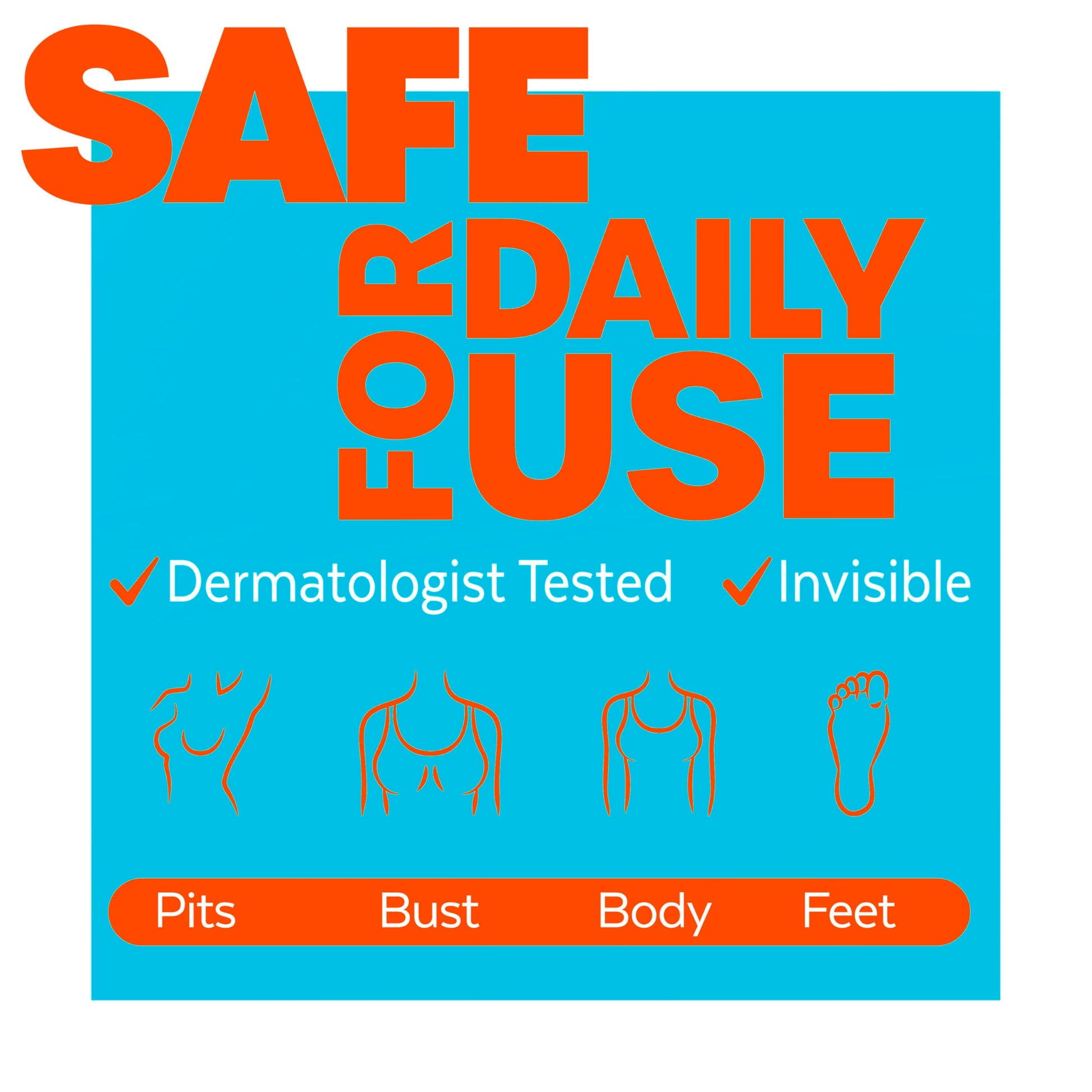 - USE FOR PITS, UNDERBOOBS, LOWER BACK, THIGHS, FEET AND MORE: Use it anywhere you want to tackle odor, including your pits, underboobs, lower back, thighs, feet and more. Feel fresh and confident throughout the day.