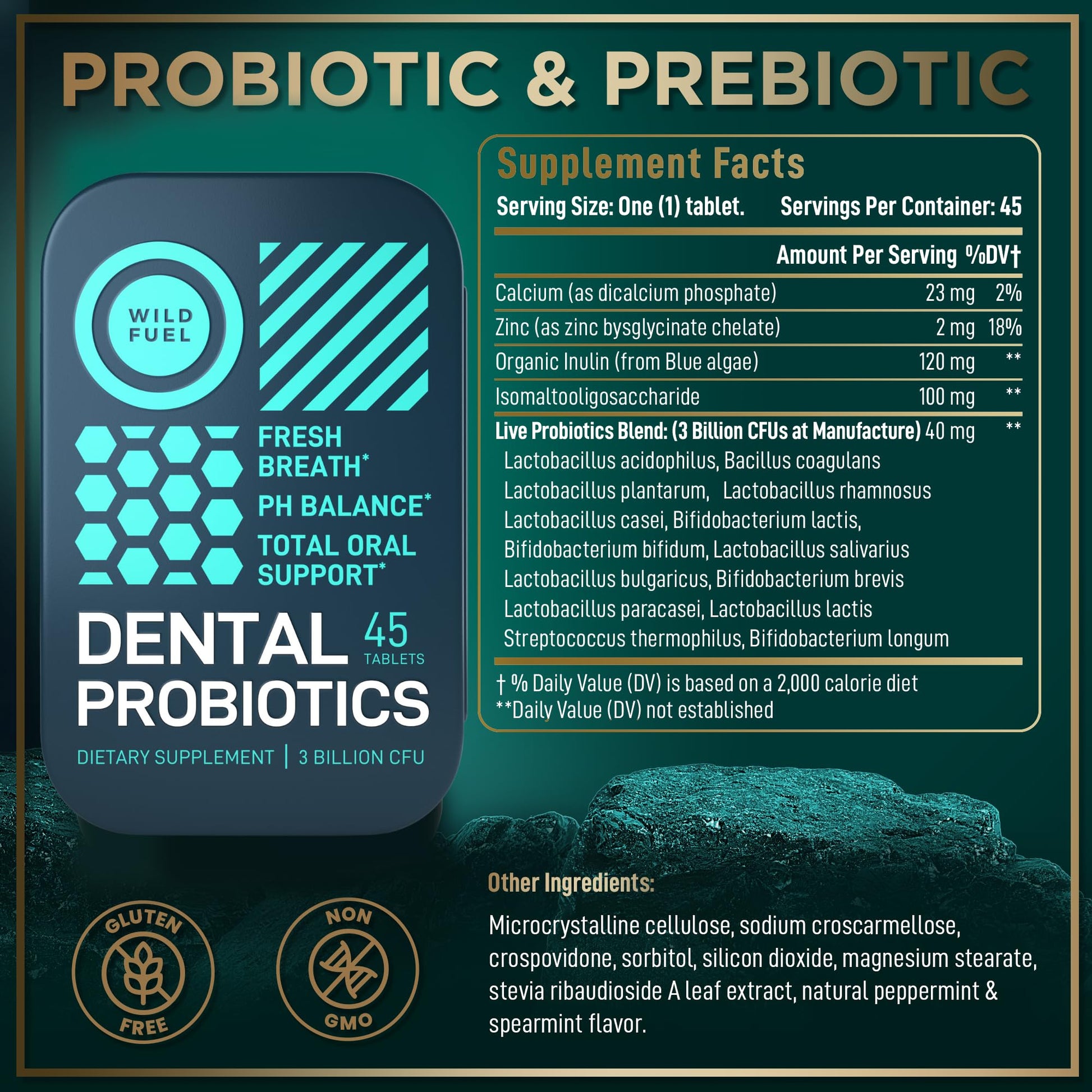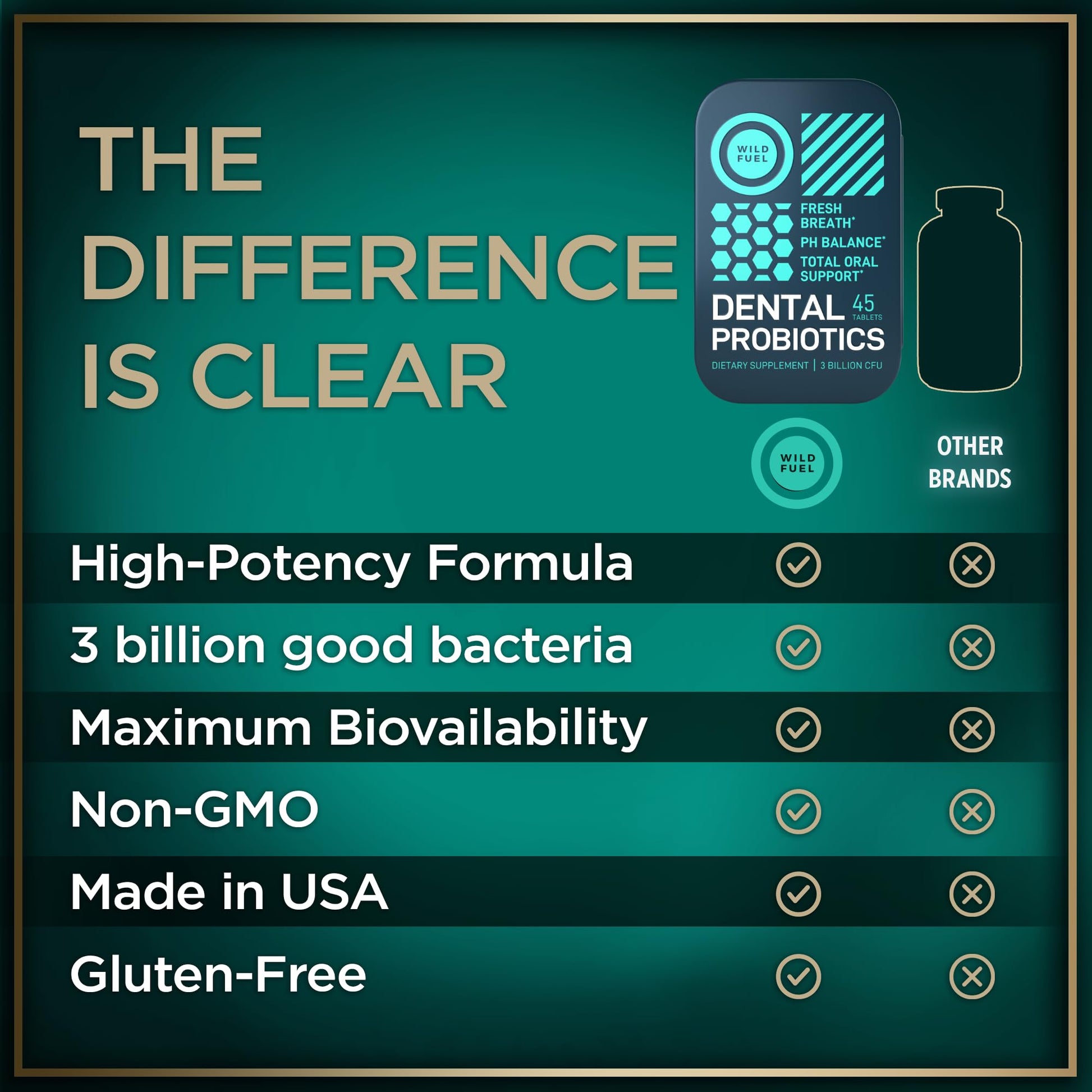 - BEYOND FRESH BREATH. Most dental products, like mints, gums, and sprays focus on disguising problems. This probiotics supplement goes beyond brushing and mouthwash for overall dental health support.
