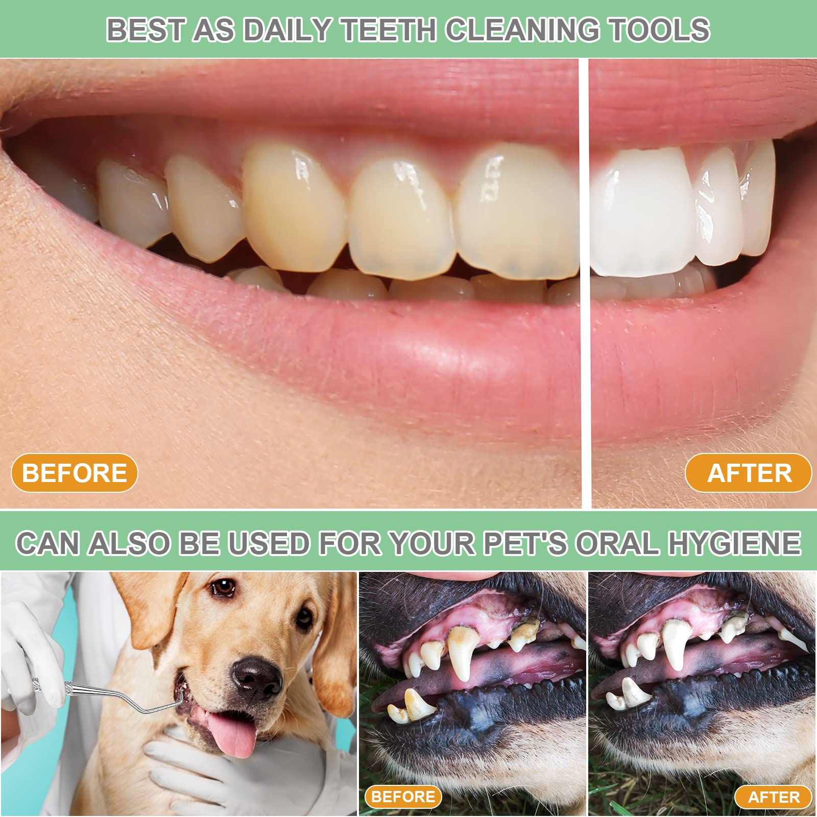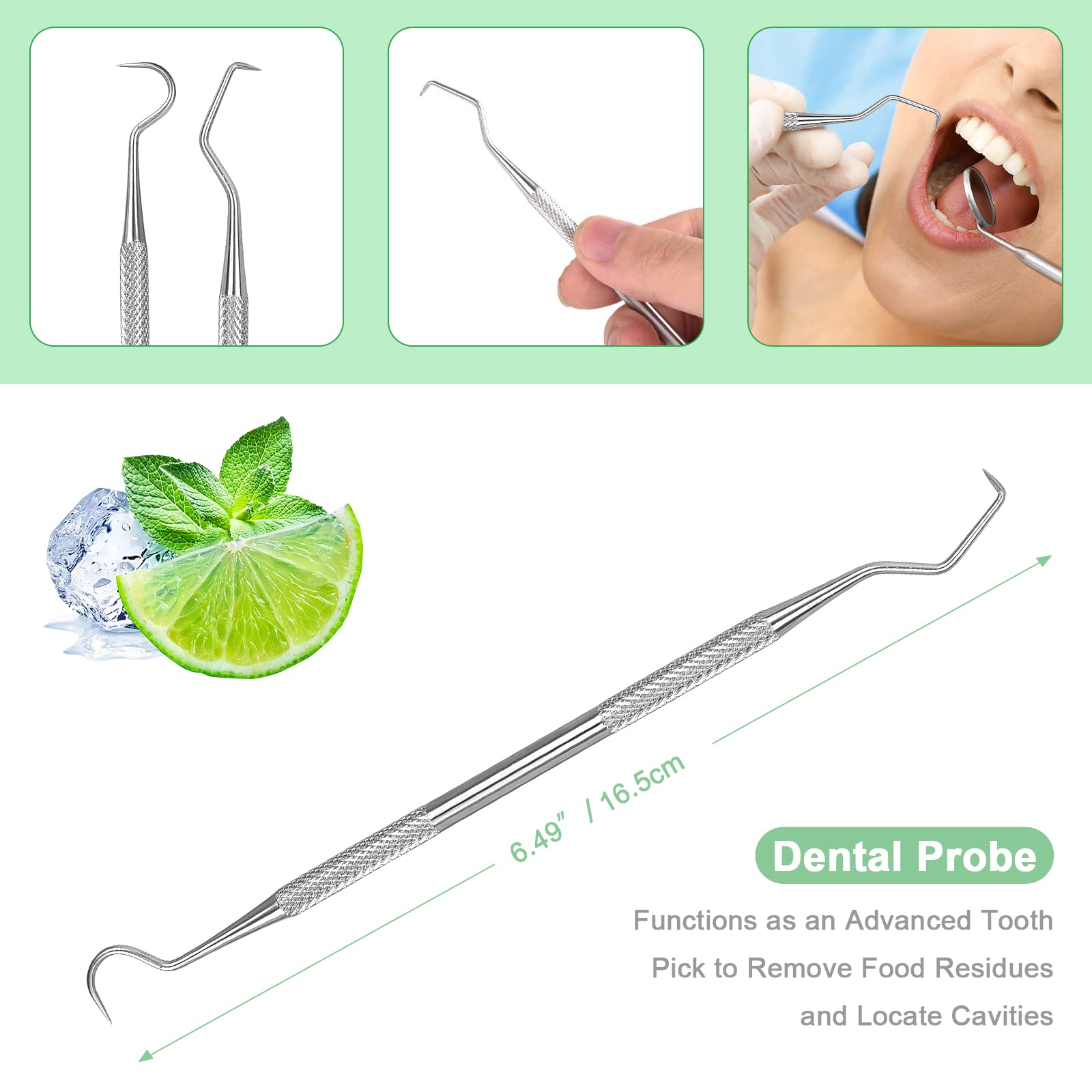 - ✔ APPLICATION: This dental tools set is perfectly designed to care for the teeth as a pro at home. This set will help you to remove tartars between teeth and gums, remove calculus, whitening teeth and fresh breath will let you become more confident with a greater smile.