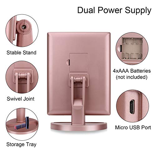 - Dual power supply modes:Operated by Micro USB cable supply or 4AAA batteries( battery not included, usb wire included) , pls noted the mirror can't store power by itself, you can't charge the batteries too.