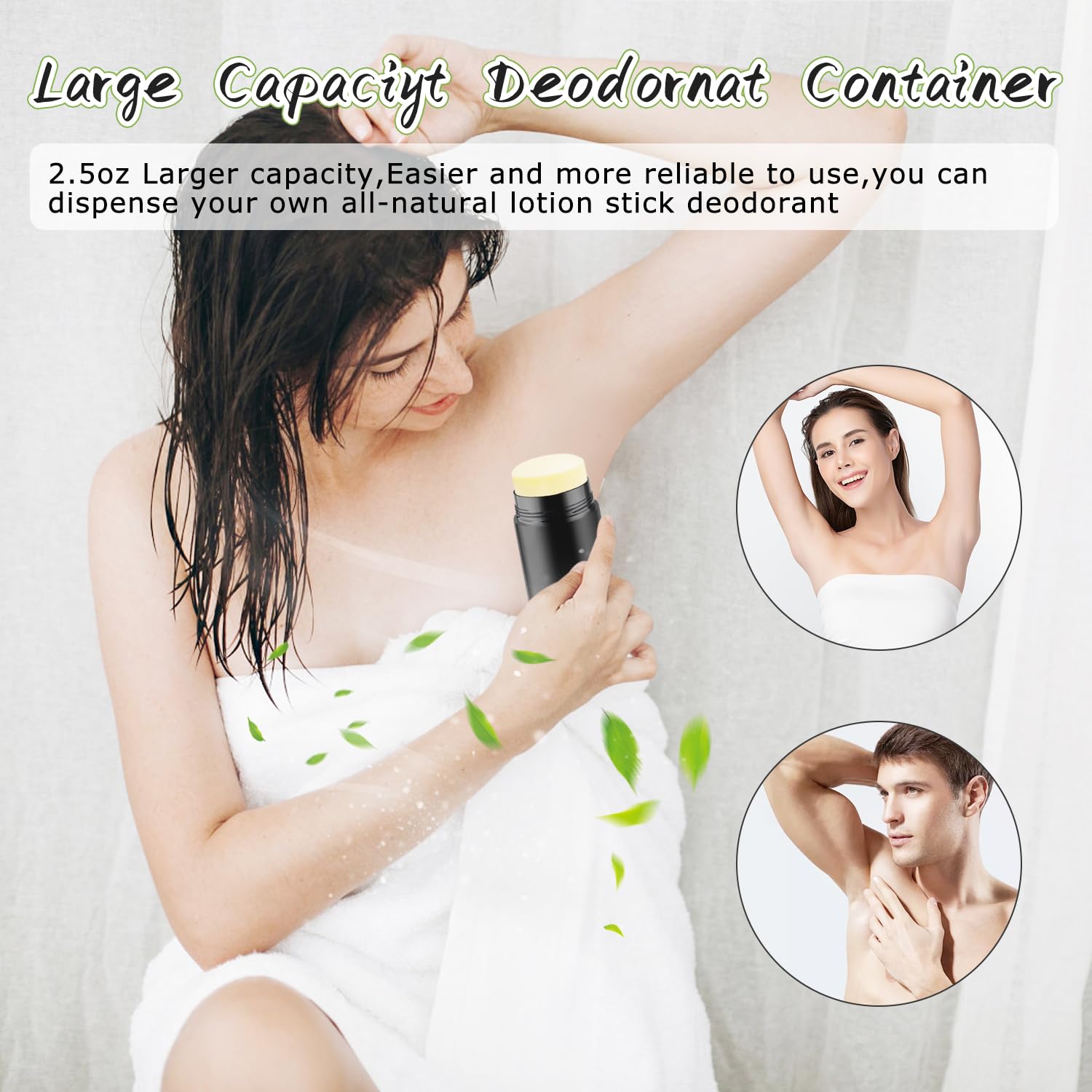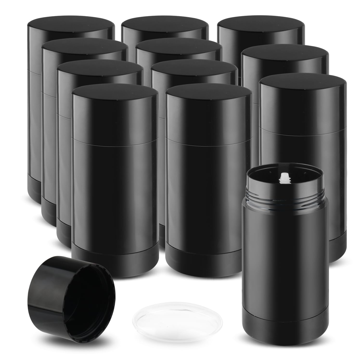 DMuuuDM 12 Pack 2.5 oz/75ml Plastic Deodorant Container,Empty Round Twist-Up Bottom Filling Stick Tube for Deodorant,Solid Lotion Bar,Body Balm,Soap Stick,Sunscreen-UPSIDE DOWN FILLING (Black)