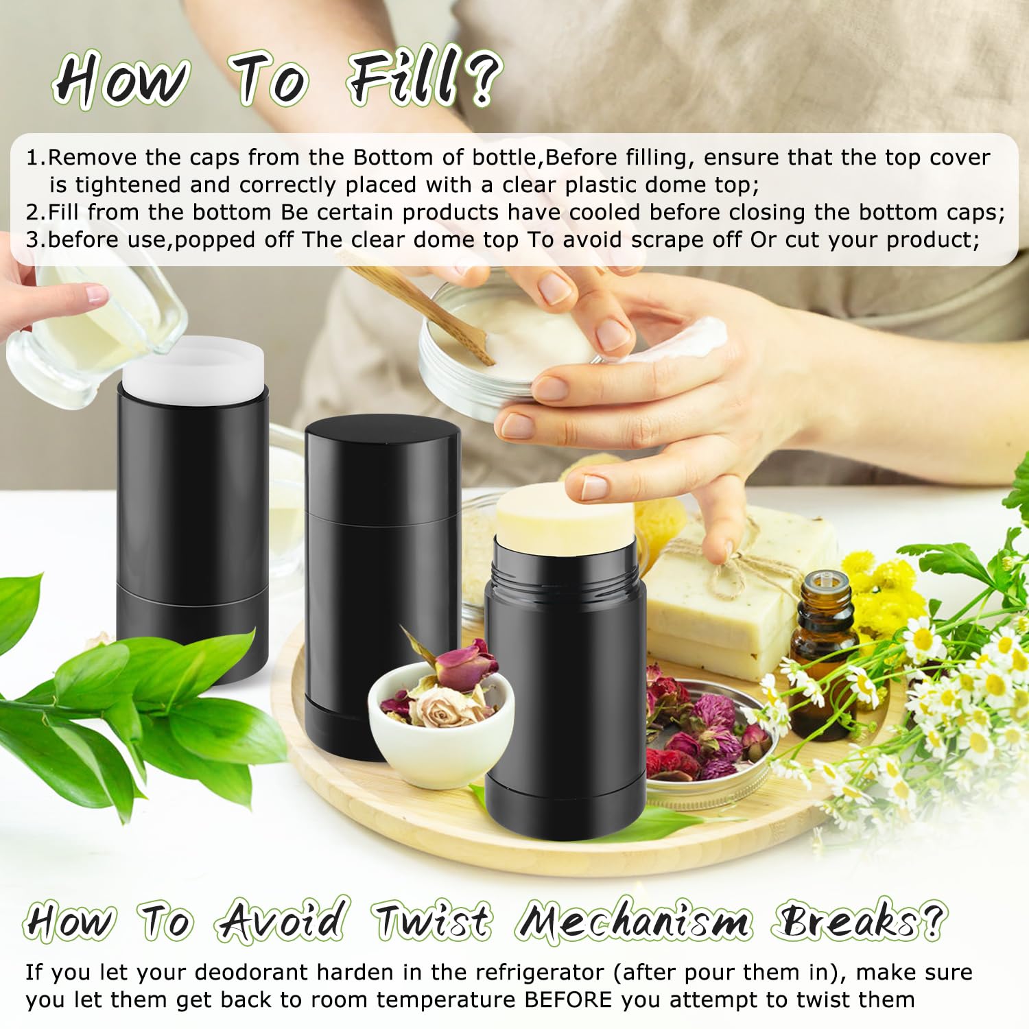 - 【Fill From Bottom】ATTENTION: This deodorant container is only suitable for UPSIDE DOWN FILLING,Different from conventional top filling.Fill from the bottom threw the twist ring,can effective avoiding leaky issues.