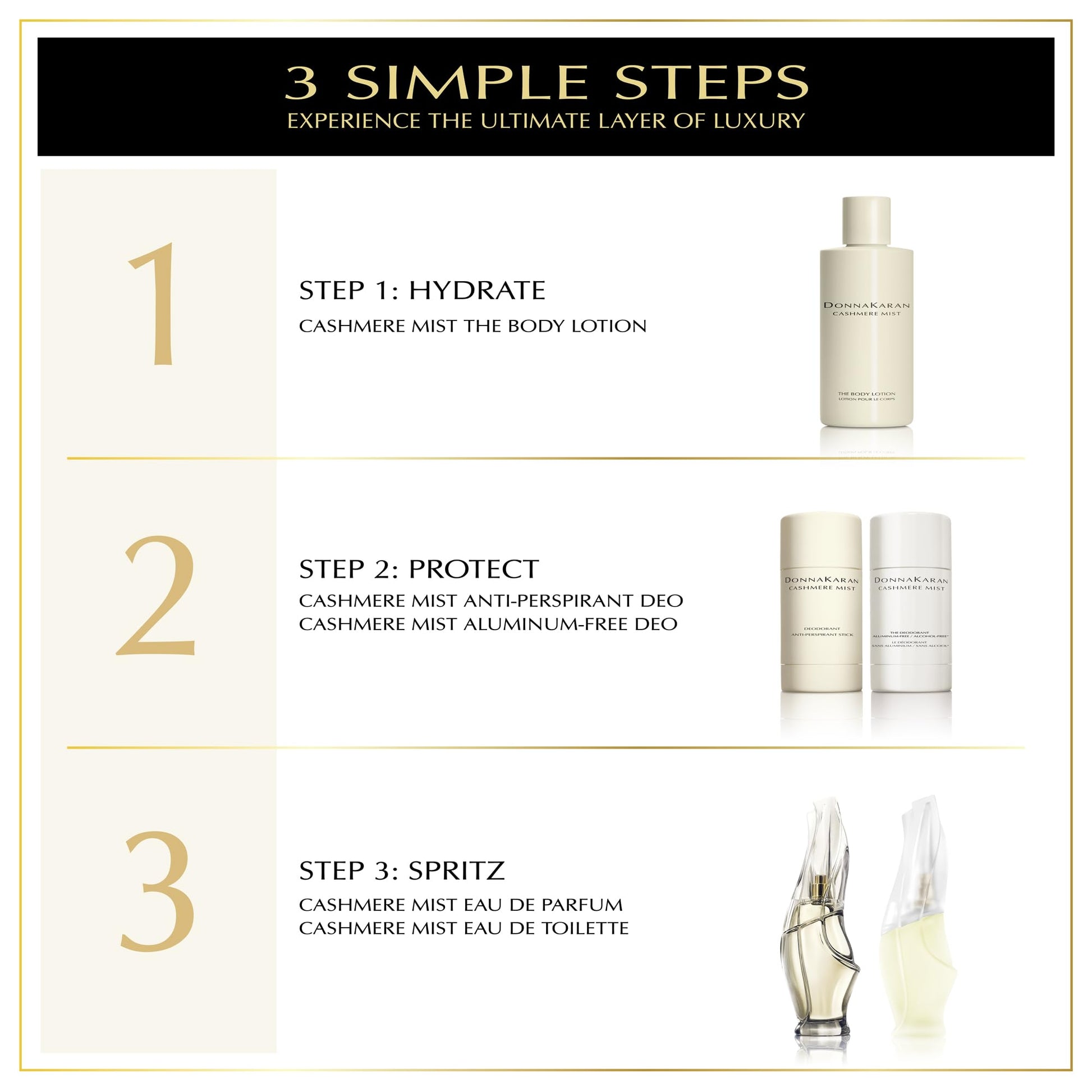 - Fragrance Story: Donna Karan Cashmere Mist is the iconic scent of self-indulgence. Cashmere Mist has timeless appeal because there is something eternal about feeling beautiful, sensual and comfortable.