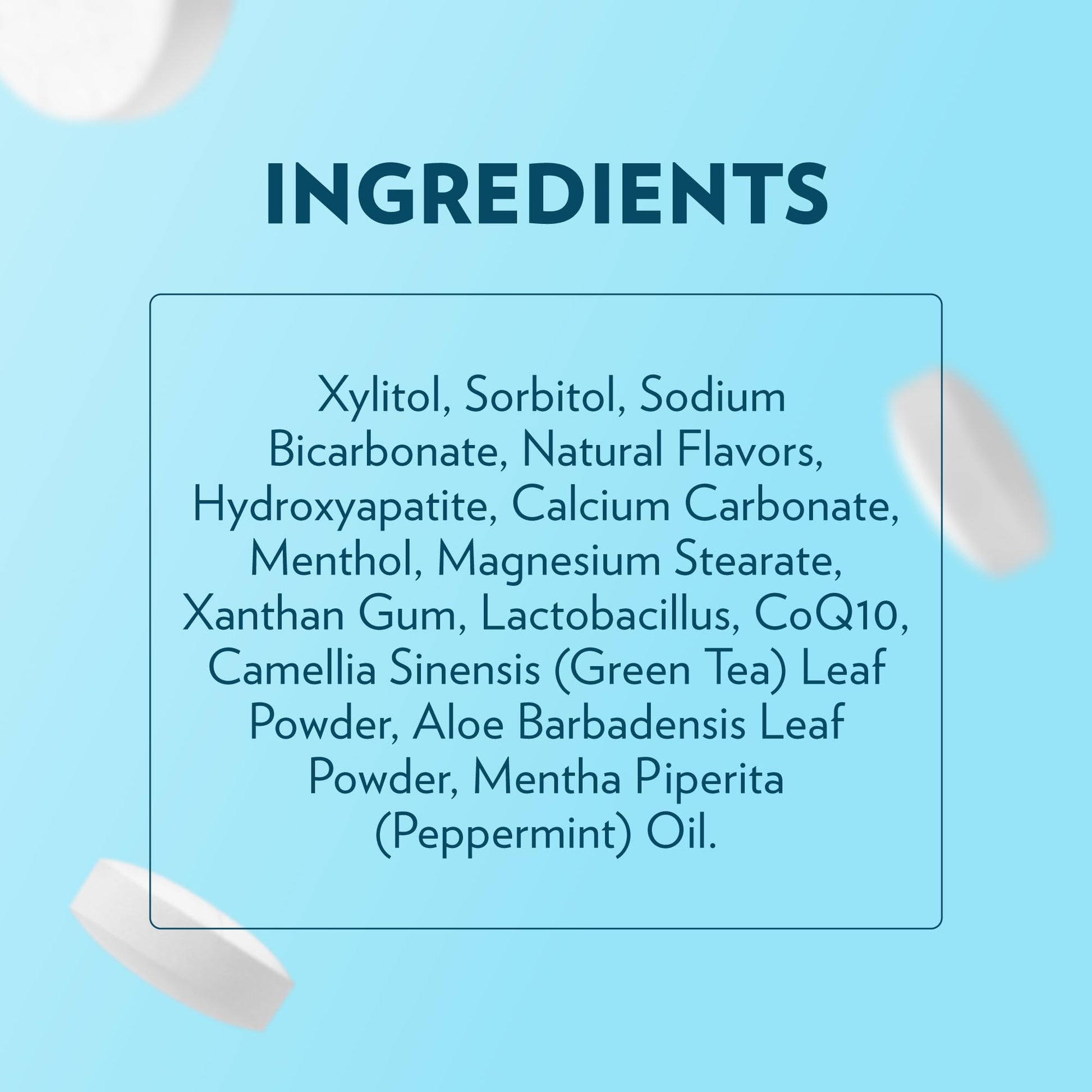 - Mouthwash Tablets - Easily rinse your mouth and freshen your breath naturally in a new and fun way. Our fluoride free mouthwash tabs are formulated with Hydroxyapatite, CoQ10, xylitol and oral probiotics that make oral care easier than ever.