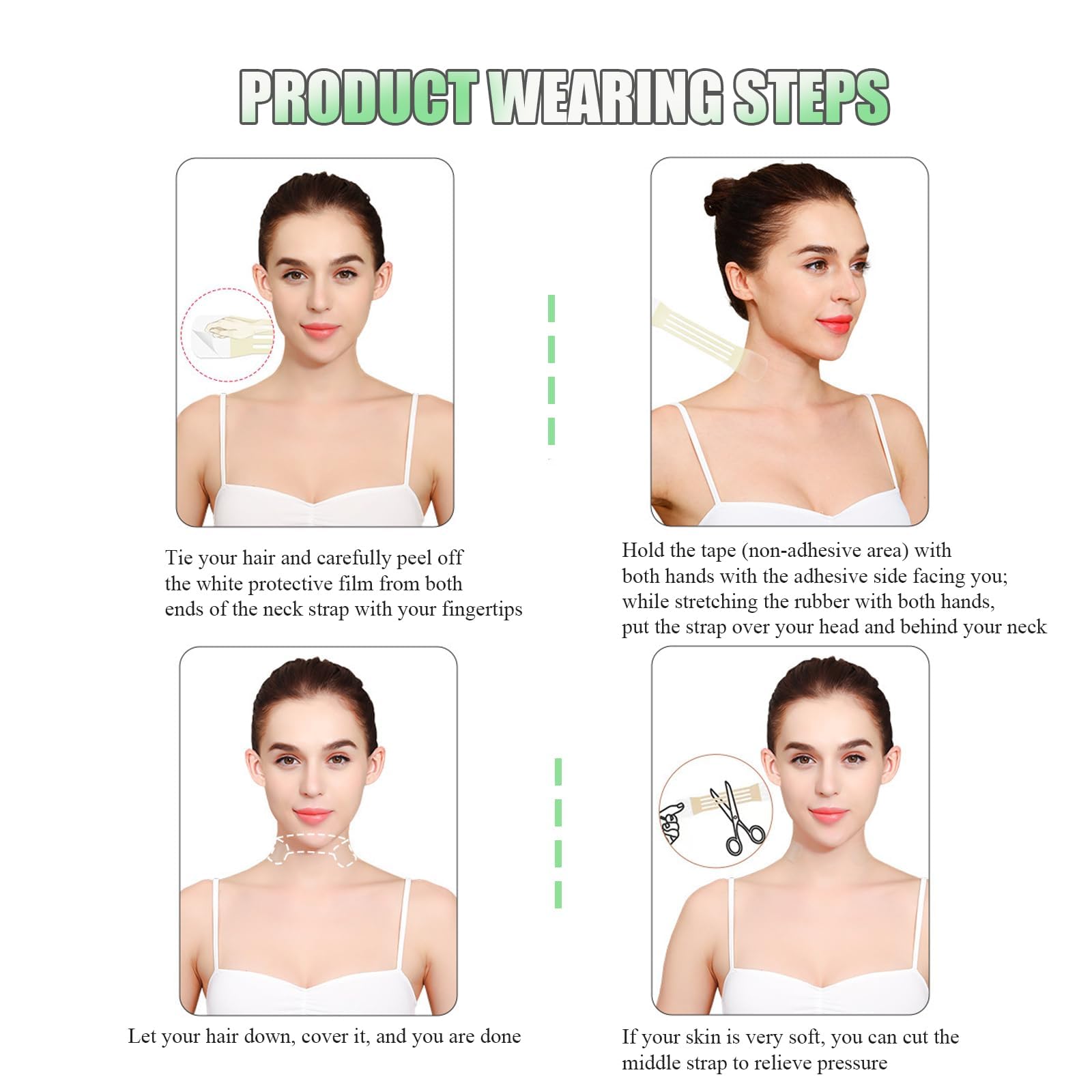 - Easy to Conceal: The tape is designed to be discreet and can be cleverly hidden behind your hair, offering you a non-surgical solution to make your chin look firmer and younger.