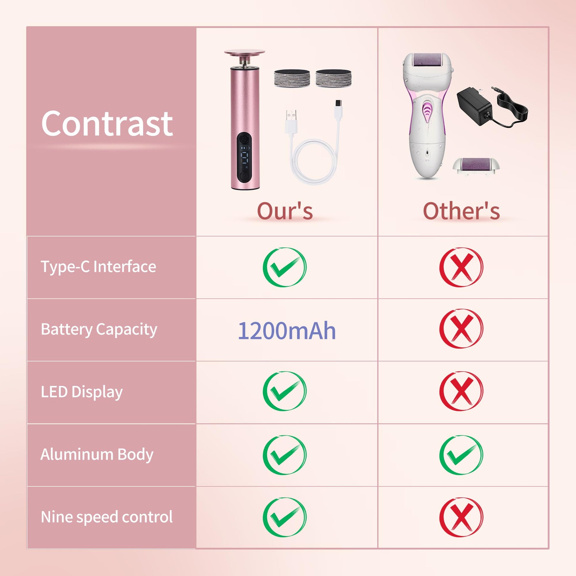 - New Upgrade: Upgraded Pink electric foot callus remover with LED display; adjustable speed from level 1 to 9; avoid excessive pressure during use to prevent machine damage