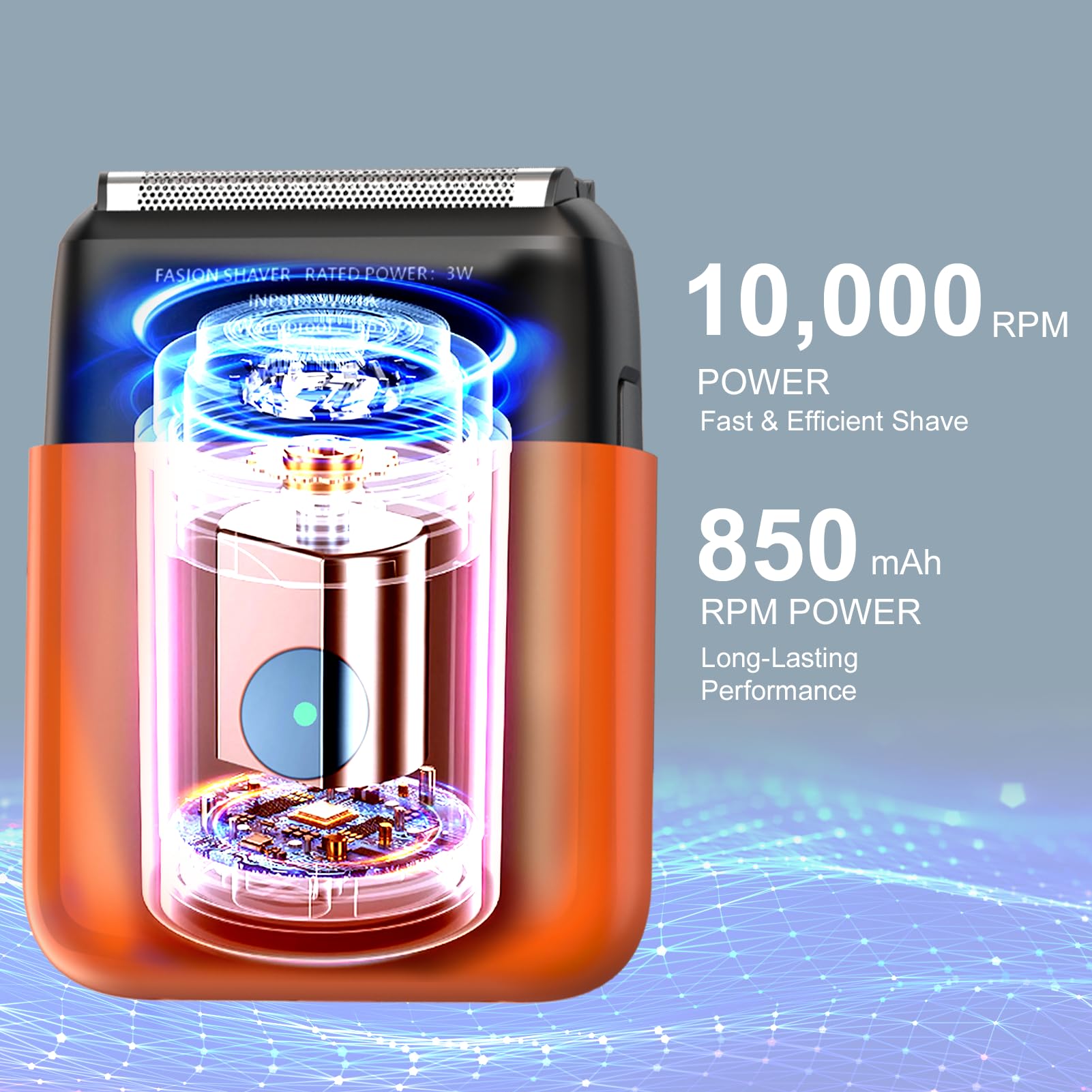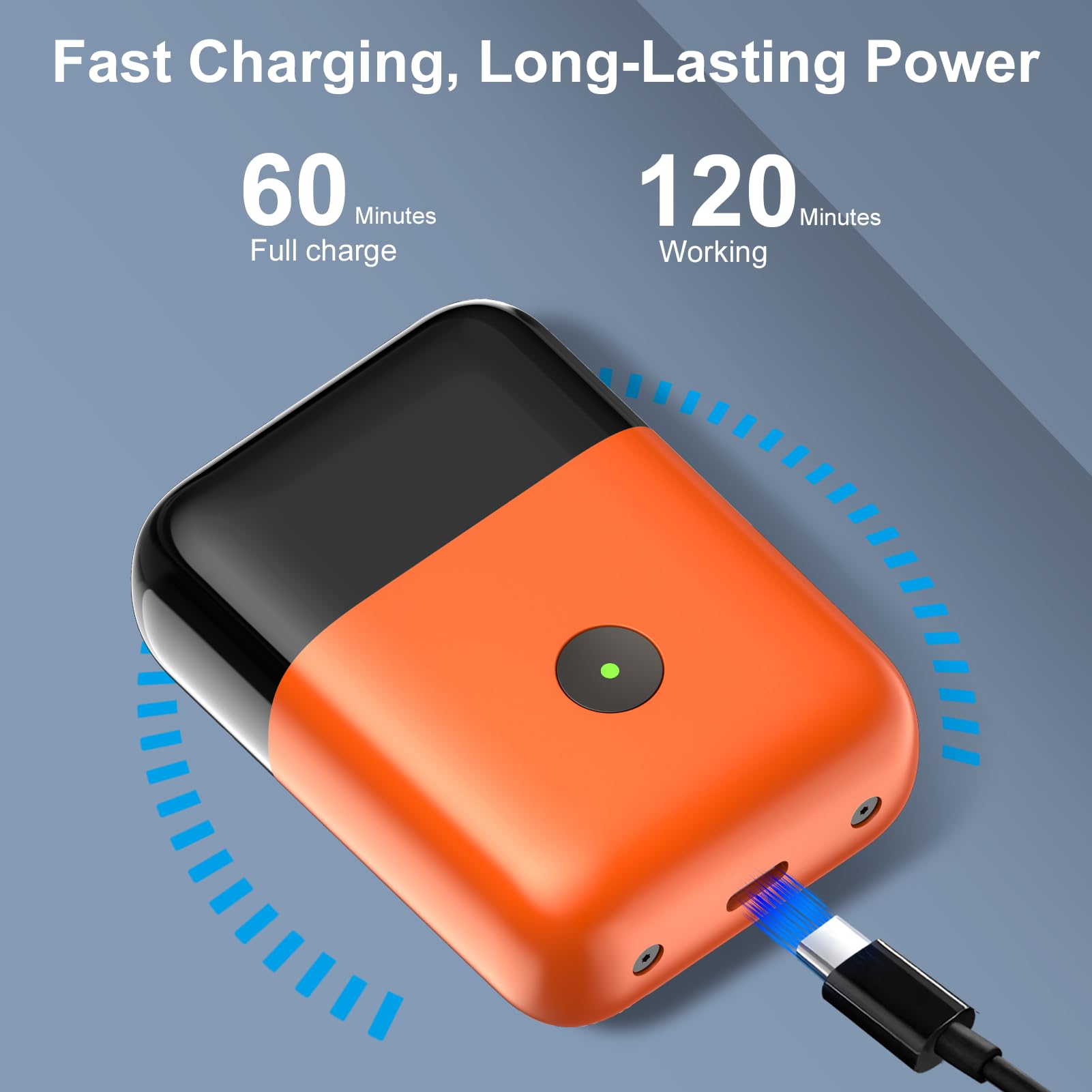 Electric Shavers for Men, Mini Travel Electric Razor, Foil Shaver for Men, Fast Rechargeable Dual Floating Blades IPX7 Waterproof Wet Dry Face Razor-Light Orange