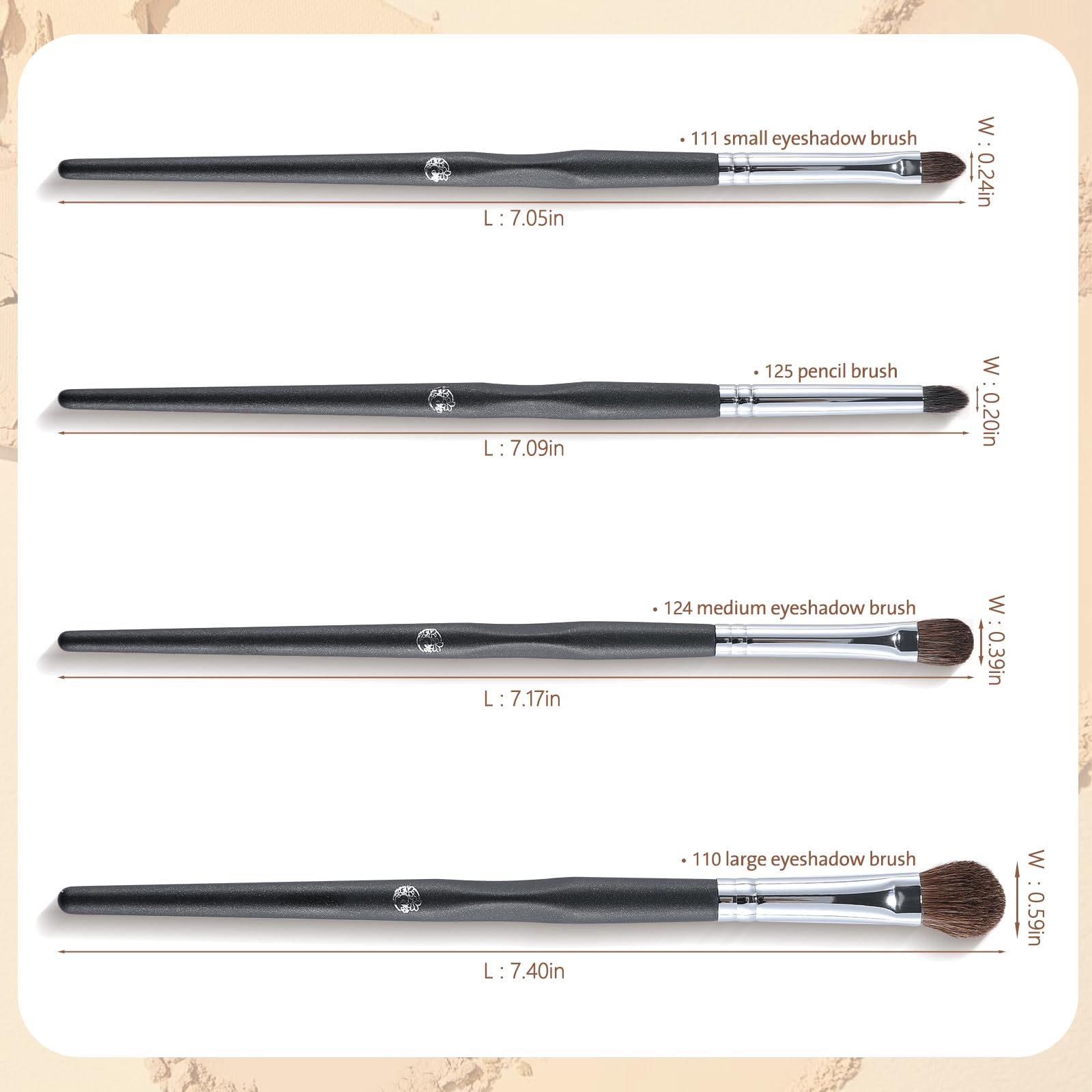 - The ENERGY Professional 4-Piece Eyeshadow Brush Set ensures seamless blending and precise detailing. The eye shadow brush set includes three horse hair brushes (large, medium, small) and a fine goat hair pencil brush, covering all eye makeup needs—from broad eyelid transitions to intricate crease, eyeliner, and detail work. Its natural bristles evenly apply powder, cream, or liquid formulas, empowering beginners and professionals to create professional, streak-free eye looks effortlessly