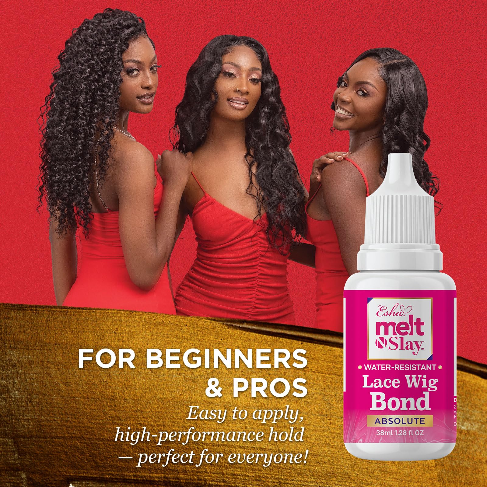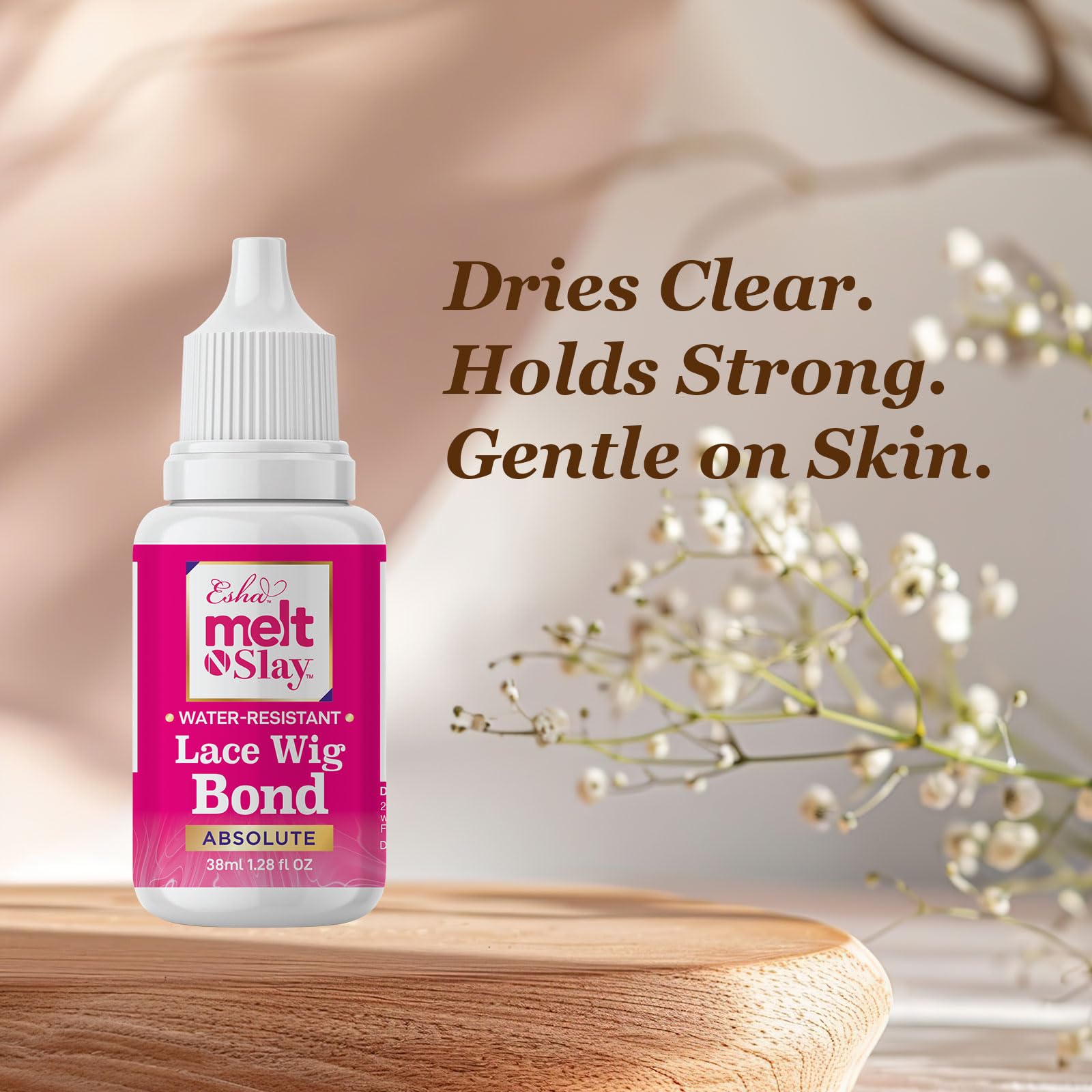 Esha Melt N Slay Absolute Lace Wig Bond β Extreme Hold Lace Glue for Wigs & Quick Weave β Waterproof, Sweat-Resistant, Non-Toxic, Invisible Finish β Upgraded Formula 2025 (38ml / 1.28oz)