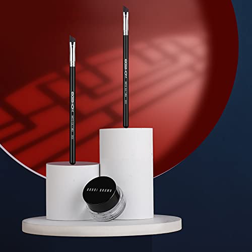 Eyeliner Brush Fine Angled - PRO Precision Gel Eye Liner Makeup Brush -Ultra Thin Slanted Flat Angle - Premium Cruelty Free Synthetic Bristles (E835 2piece)