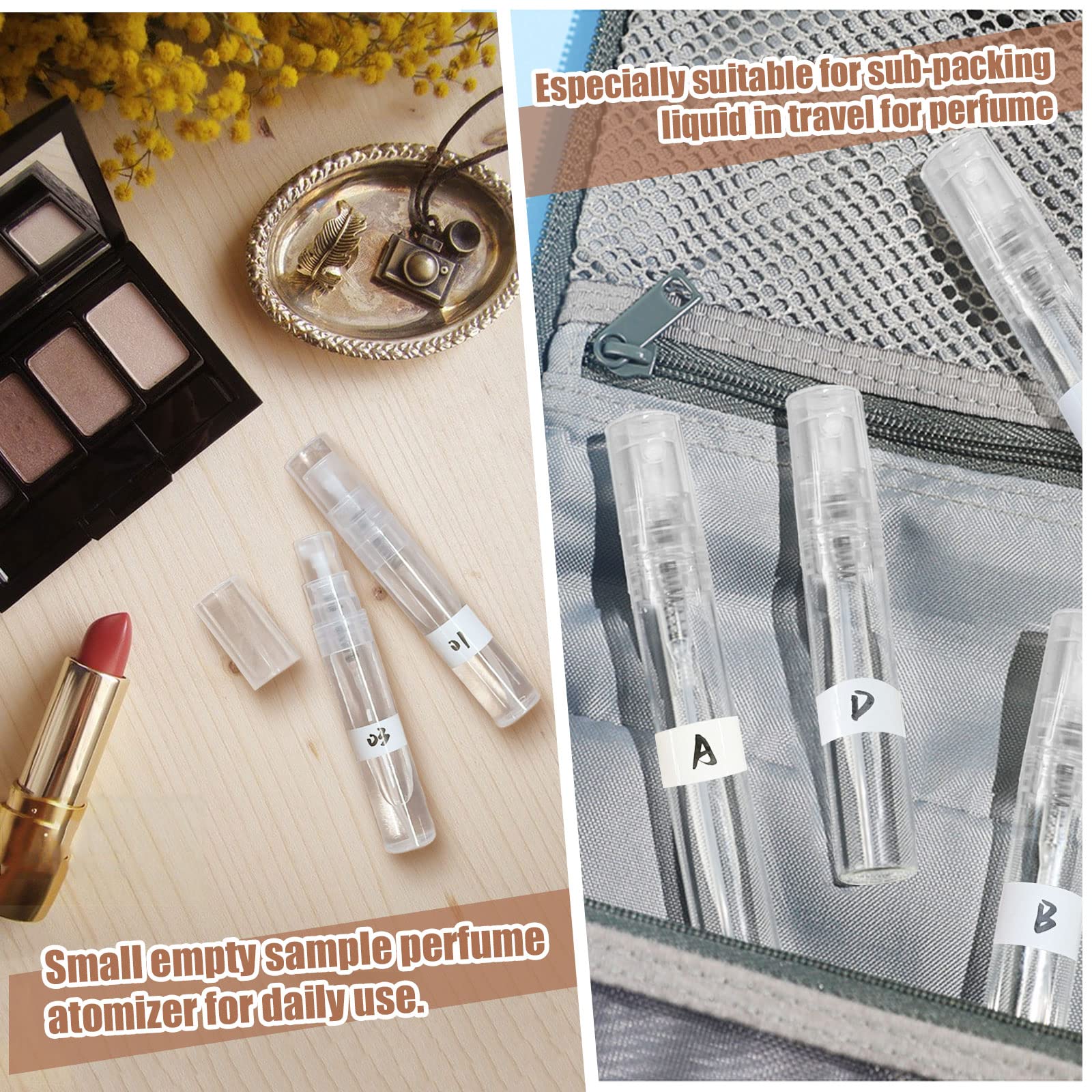 - Refillable & Reusable: The mini perfume bottle is made of high quality plastic, clean,wear-resistant and smooth surface. Refillable and reusable for long time use. Reduces waste effectively compared to disposable bottles.