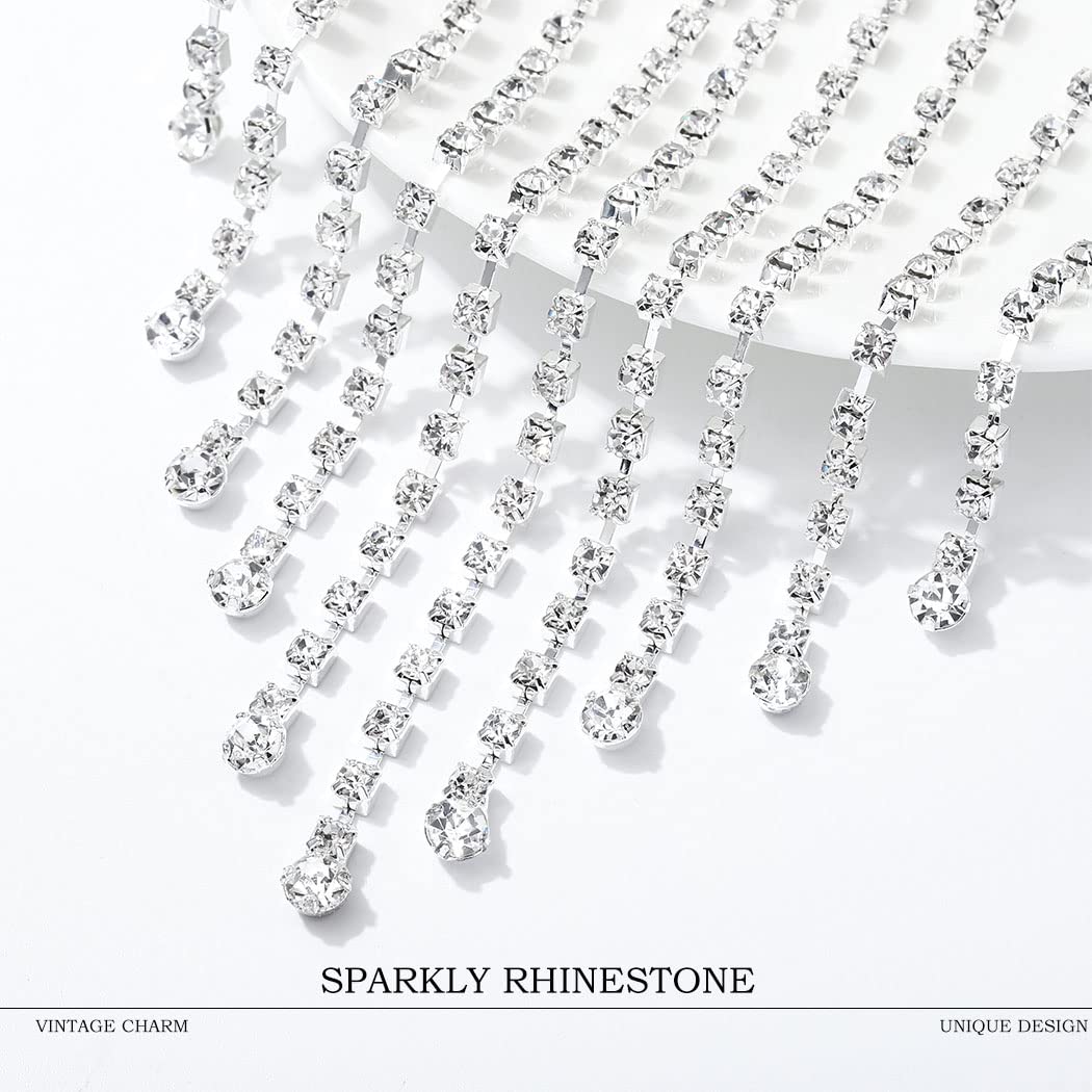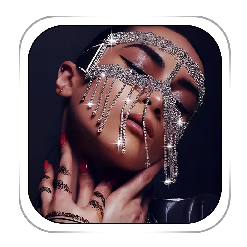 Fdesigner 1920s Rhinestone Masquerade Mask Costume Headpieces Flapper Face Cover Head Chain Jewelry for Women (Silver-Unique)