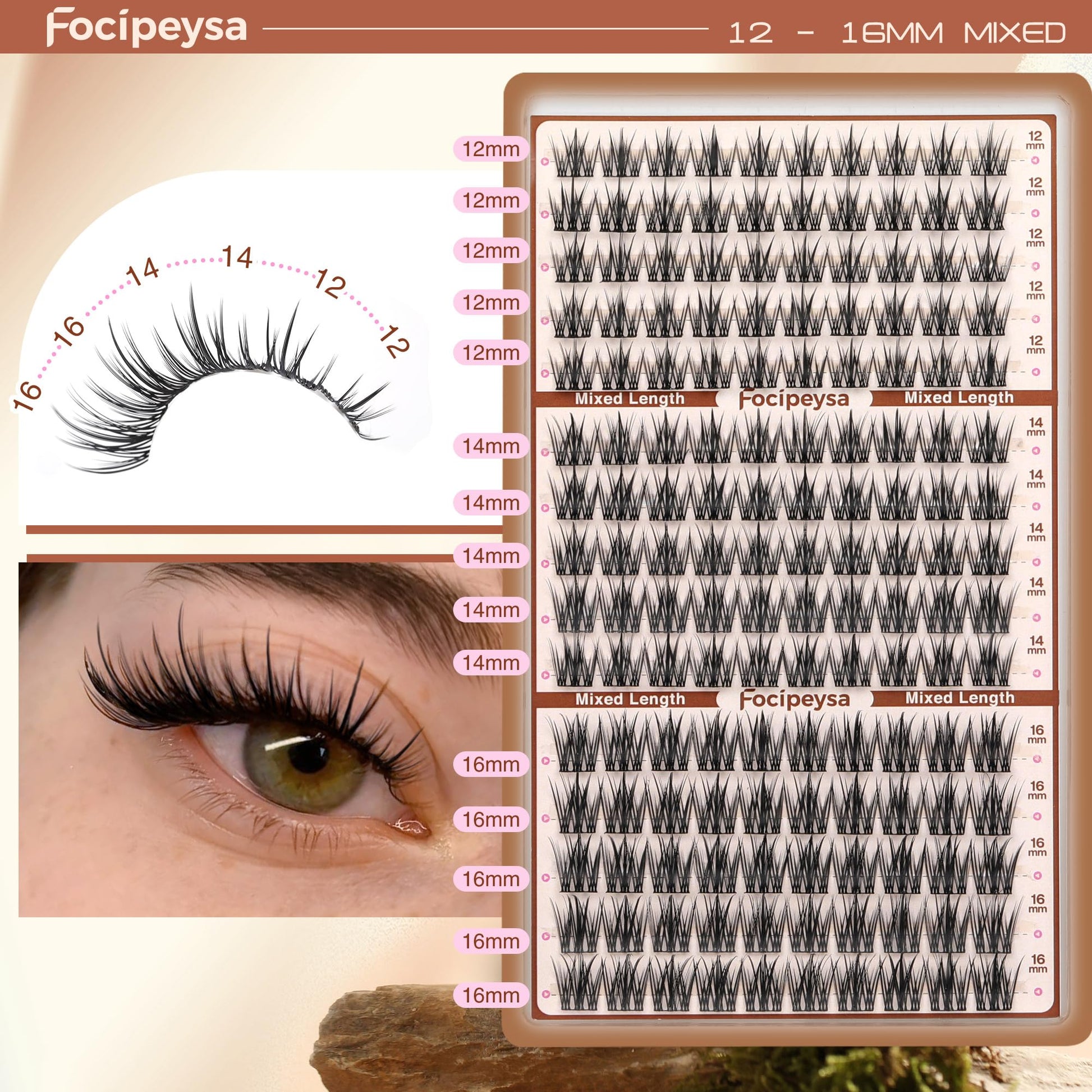 1. Length: 12-16mm lash clusters single length.