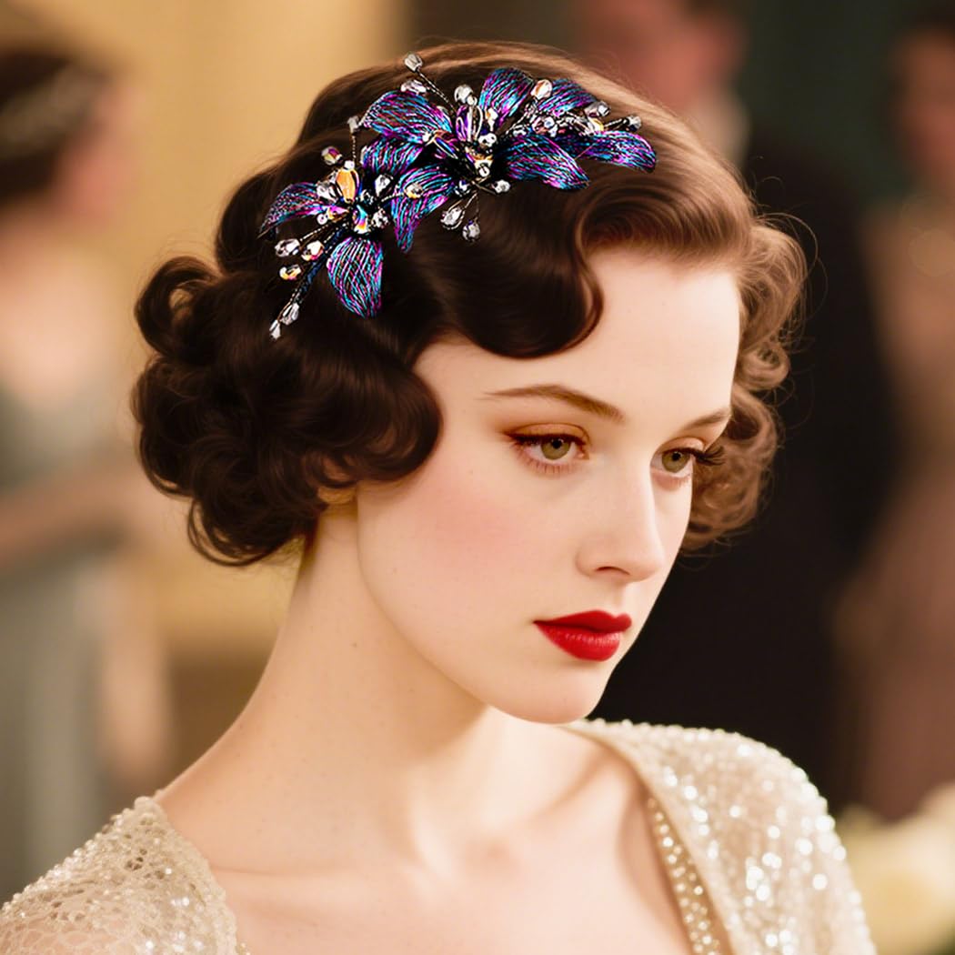- Blue floral headpiece for bride is fashionable and sturdy, tastefully adorned with sparkly crystal vines and stunning flowers made by blue and purple copper wire and crystal in stone chip shape, and can be able to match any outfit you want to put on, fitting for any occasions you like, such as prom, party, wedding, anniversary, festival, photo-shoot or daily wear.
