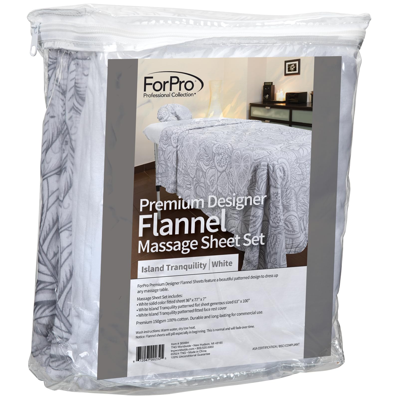 ForPro Premium Designer Flannel 3-Piece Massage Sheet Set, Island Tranquility, for Massage Tables, Includes Massage Flat Sheet, Fitted Sheet and Fitted Face Rest Cover, White