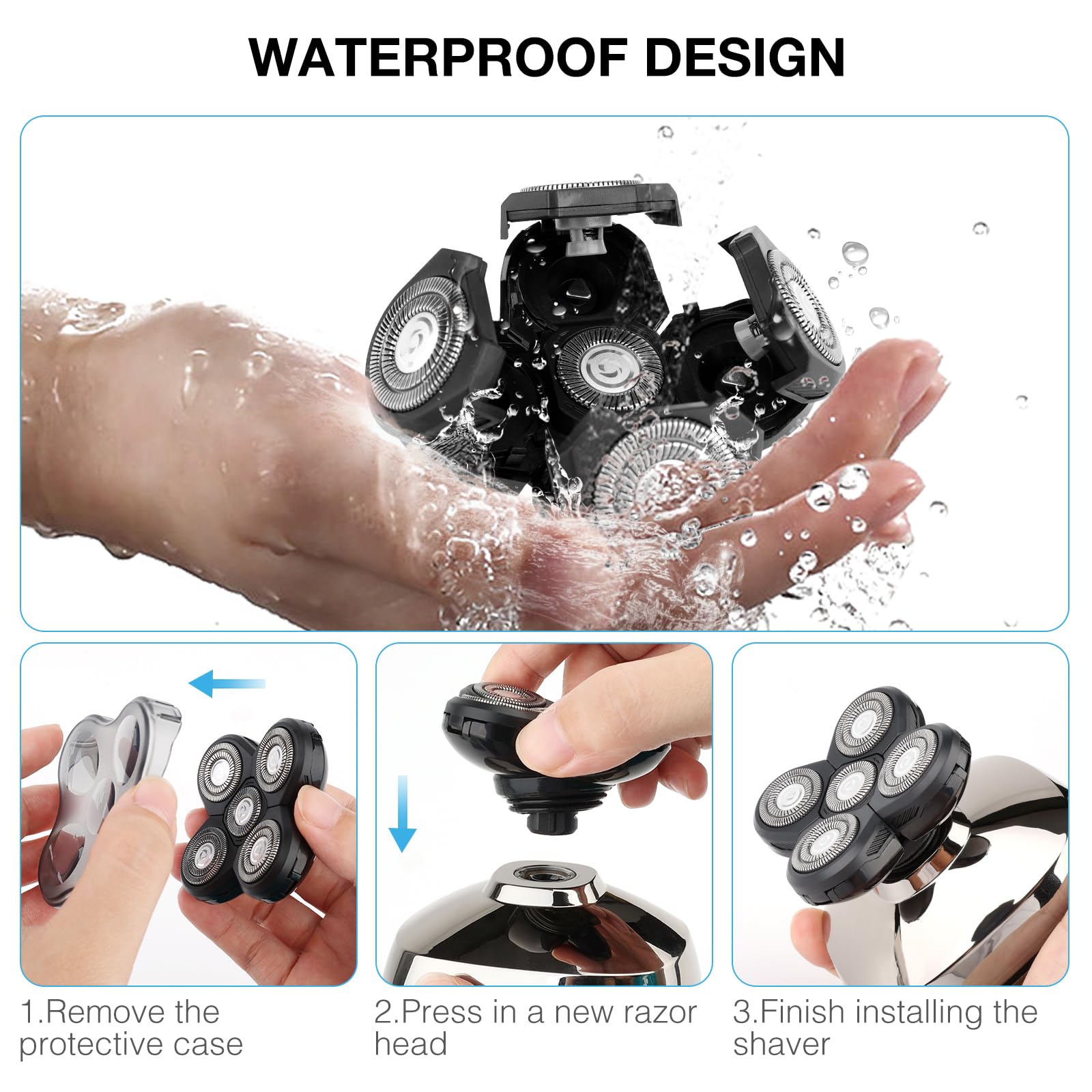 - 【Easy to Clean】 The rotary shaver head for bald men is fully washable. Twist each blade clockwise to open and rinse the inside with running water to keep it clean and extend the life of the head.