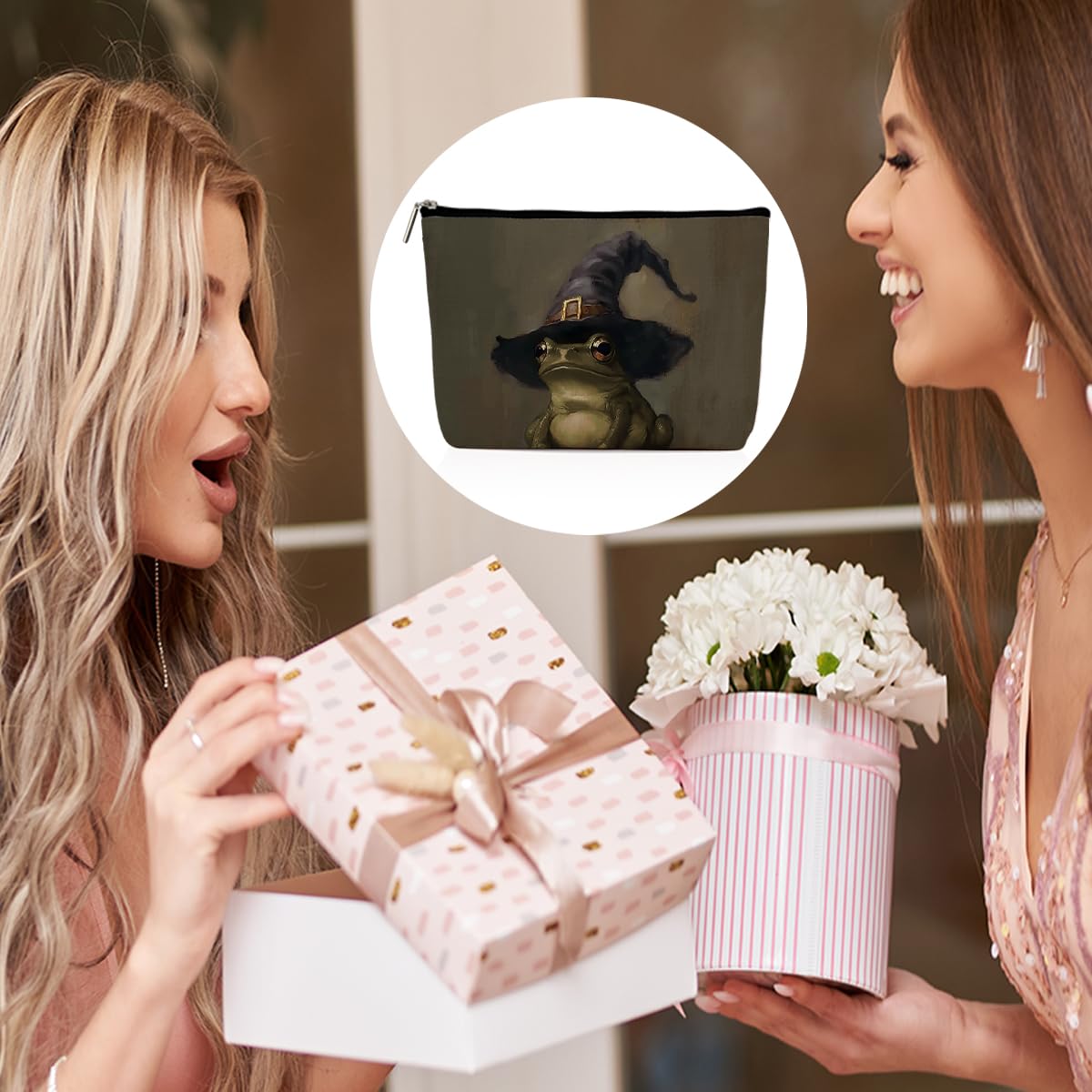 Frog Lovers Gifts, Funny Frog Makeup Bag, Aesthetic Design Canvas Zipper Organizer Pouch Cute Roomy Portable Toiletry Bag for Women Girls Travel Storage Accessories