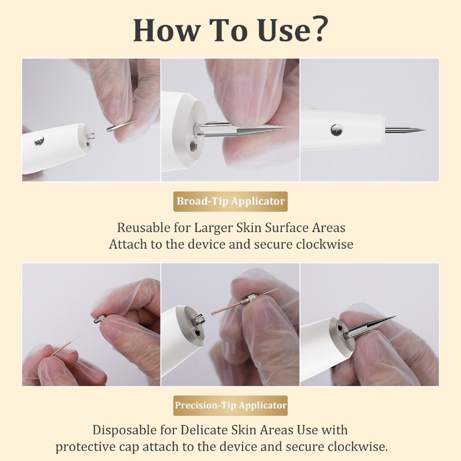 - Two broader tips and fifteen precision tips allow customized application on various skin areas.