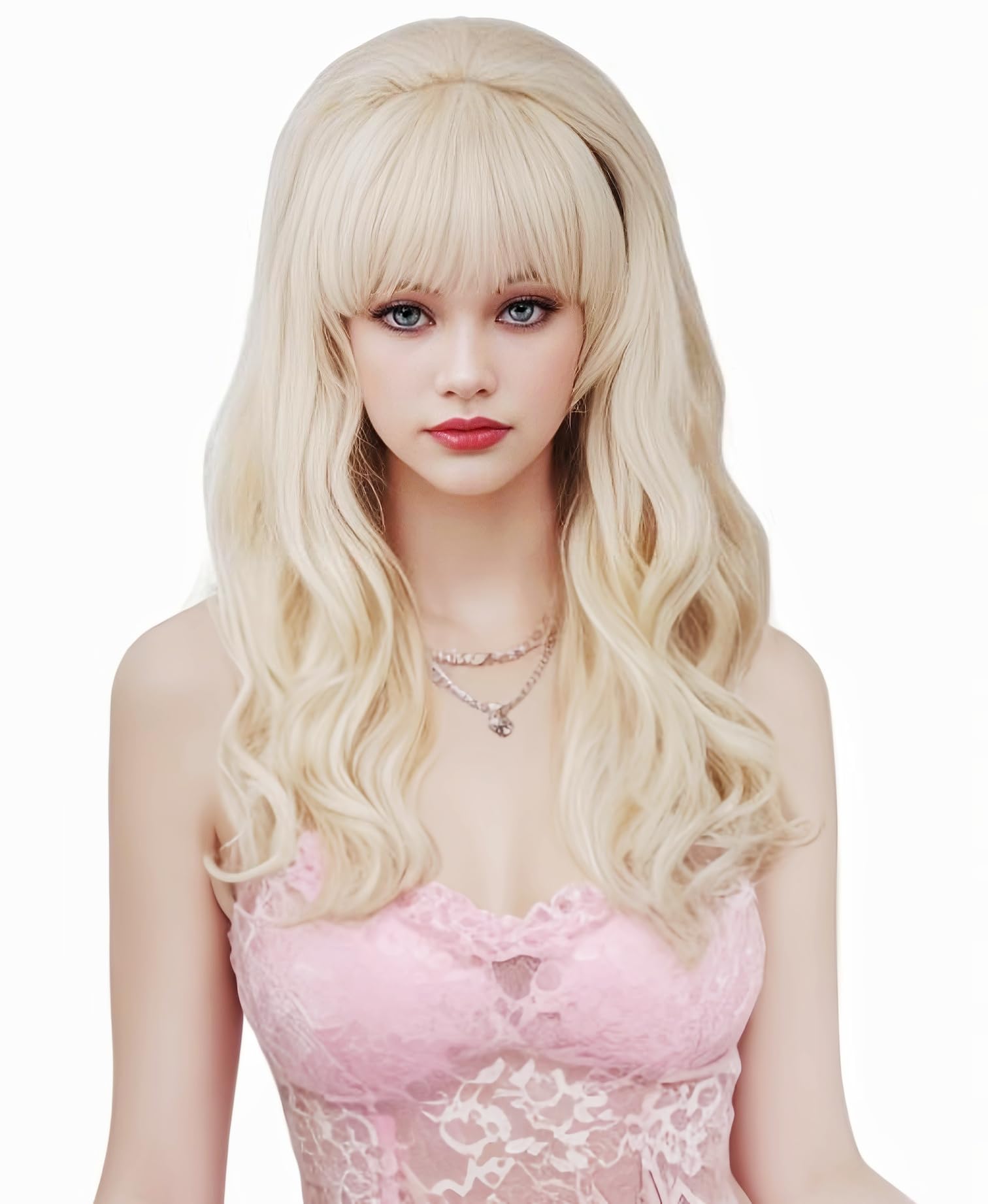 Gerulyss Long Wavy Wigs with Big Bouffant Blonde 80s Costume Classical Wig with Bangs Beehive Hair Wig for Women