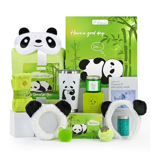 - ¡¼Ultimate Gift Value¡½: This birthday gift baskets for women contains 12 premium gifts beautifully packaged, 1st luxury flannel blanket(63"L x 47"W, 1.54 lbs), ?2nd 20oz Panda pattern insulated stainless steel tumbler, 3rd hair hoop, ?4th headband, 5th silk eye mask , 6th Lemon scented candle(3.5oz), 7th crystal soap, 8th Jasmine bath Bombs ball , 9th bath salts(7oz), 10th Fuzzy Socks, 11th greeting card, 12th collagen facial mask