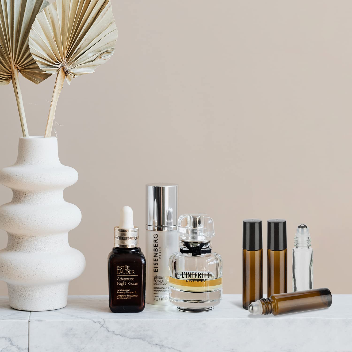GIVITASOT 10ML Essential Oil Roller Bottles, 6 Pack Amber Oil Roller Bottles for Essential Oils, Roll on Bottle with Stainless Steel Balls(6 Labels, Opener, Funnel, Dropper Included)