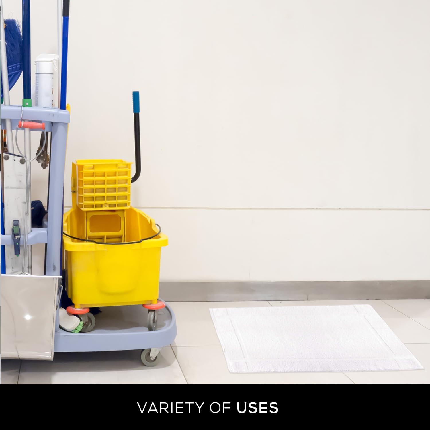 GOLD TEXTILES 12 Pack New Cotton Blend Economy White Hotel Bath Mat Towel (18x25 Inches) Light Weight Quick Drying & Machine Washable - Hotel Supplies Shower Bath Mat Towel