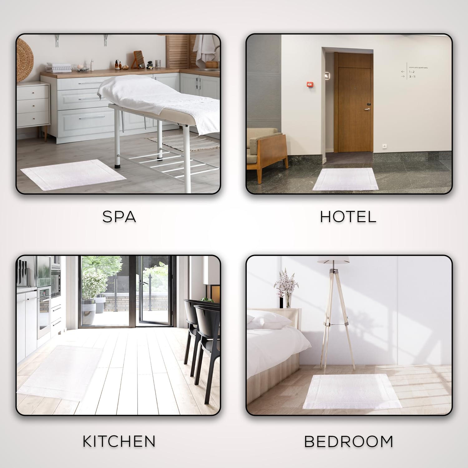 - GENEROUS 18x25 SIZE: These bath mats are fully reversible. These towel is pocket friendly as it is available an affordable price. New White Hotel-quality Bath Mats- That Feature A Single Cam Border Decorative Design. An ideal size for the shower and sink area, our bath mats work for hotels, spas, salons and more . Weight lb/Dozen