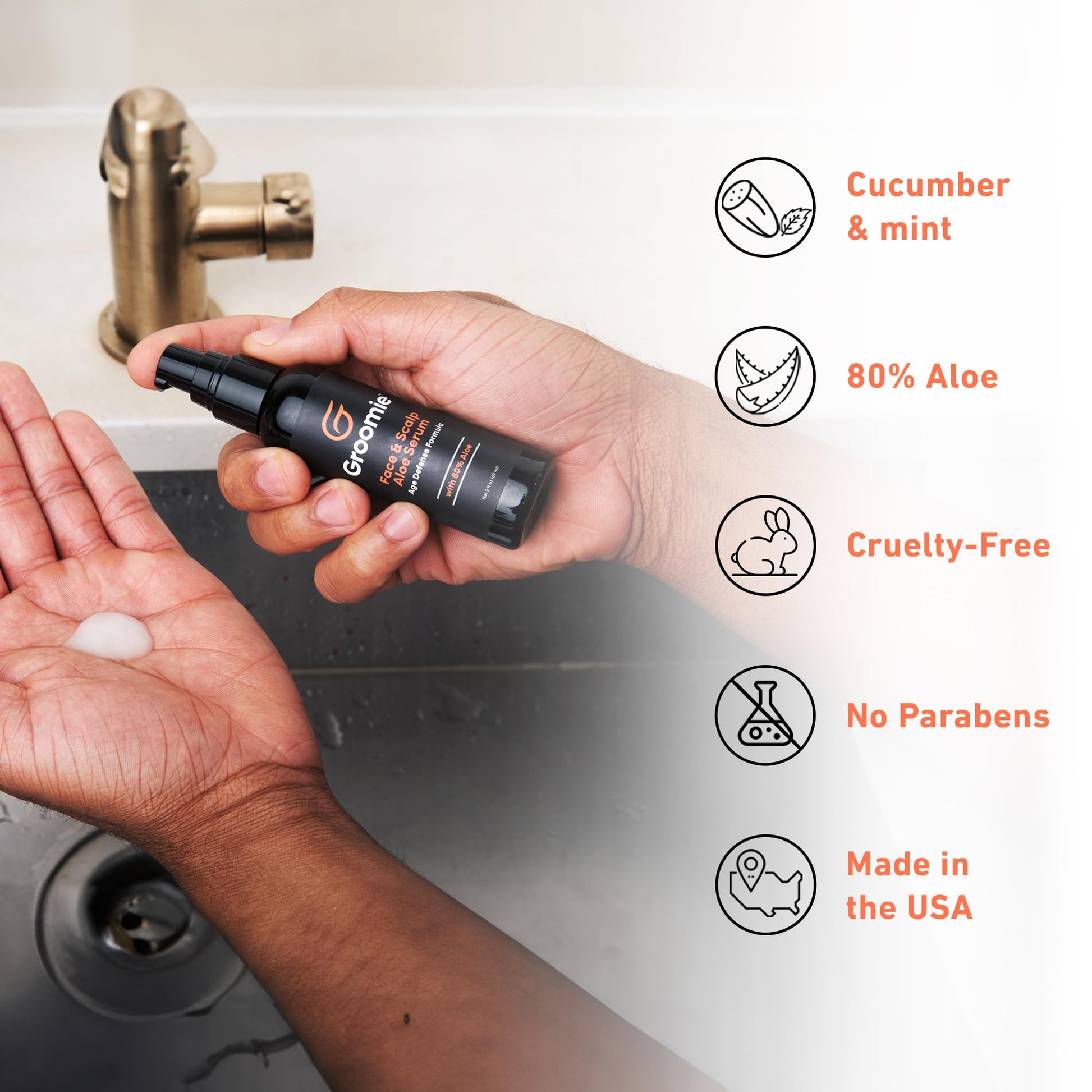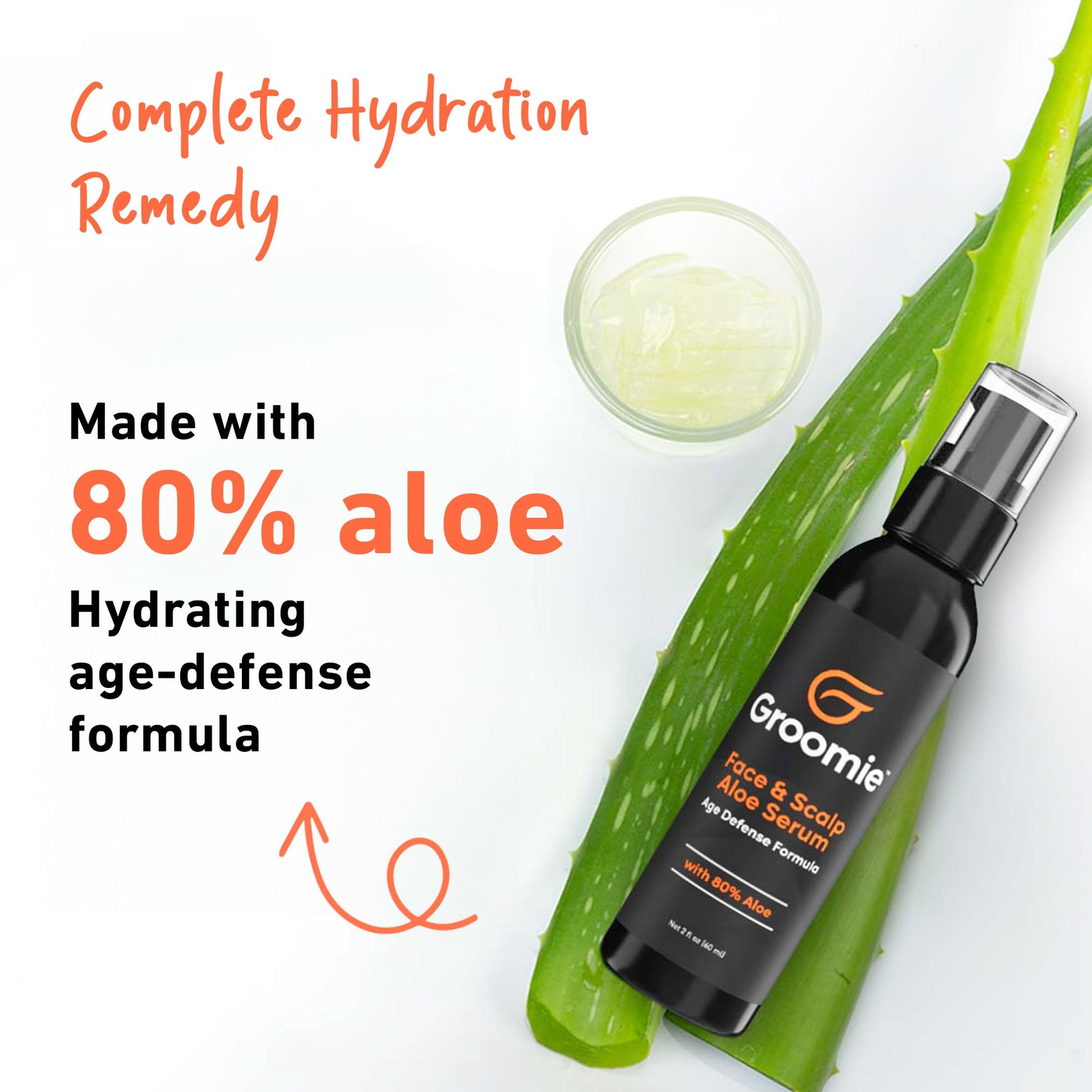Groomie Face & Scalp Aloe Vera Serum - Hydrating, Soothing, and Moisturizing Skincare Formula, Daily Lightweight and Fast Absorbing, After-Shave Care to Keep Skin Hydrated All Day