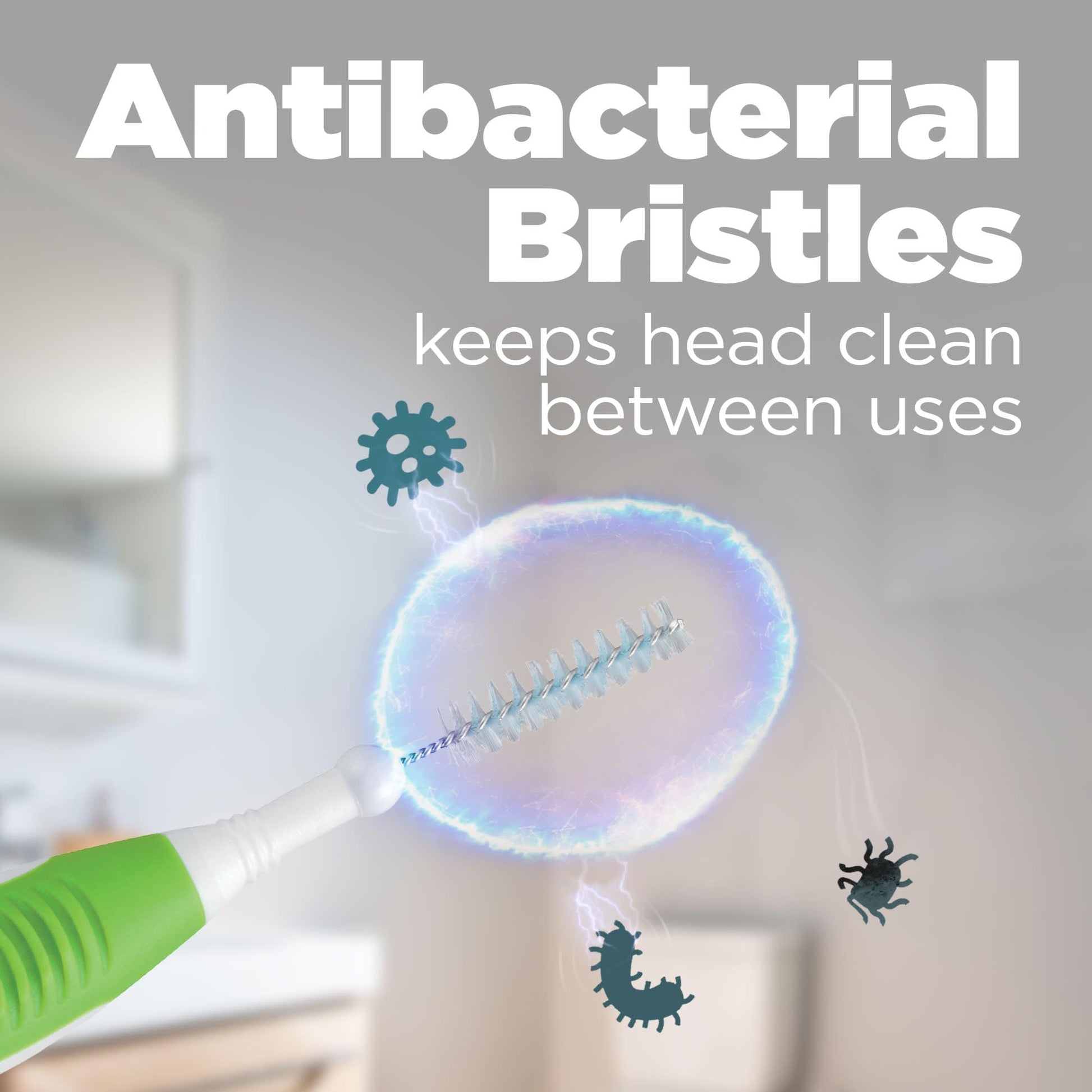 Go beyond brushing with GUM Proxabrush Go-Betweens. Between-teeth cleaning is essential for removing plaque from hard-to-reach areas that are missed by brushing alone....But tight teeth, difficulty gripping floss, and a simple lack of time prevent many of us from flossing as often as we should. Proxabrush Go-Betweens Interdental Cleaners are clinically designed by dental professionals to offer a quick, easy, and effective alternative to flossing. Our Tight reusable floss brushes are specifically made to remove plaque and food particles from tighter interdental spaces, the perfect braces cleaner. Each floss brush features coated bristles and a breathable travel cap that allows for up to ten days of use. With GUM Proxabrush Go-Betweens, cleaning the hard-to-reach areas in your mouth has never been easier. A non-slip rubber handle and bendable neck make it easy to maneuver to the back of the mouth while nylon coated wire cleans around braces, bridges, implants, and other dental devices without the risk of scratching or galvanic shock. Features : ● Designed for tight interdental spaces ● Triangular bristles for 25% more effective plaque removal* ● Nylon coated wire is a perfect braces brush for cleaning. ● Coated bristles and a breathable travel cap allow 10 days of use ● Non-slip rubber handle for easy grip ● Bendable neck for further reach Our dental brushes make it easy to carry a confident smile with you wherever you go. Different from flosser picks, each interdental brush features a compact, portable size that fits easily into purses, pockets, and travel kits for healthier gums, cleaner teeth, and fresher breath anytime, anywhere. *vs DOF-0001