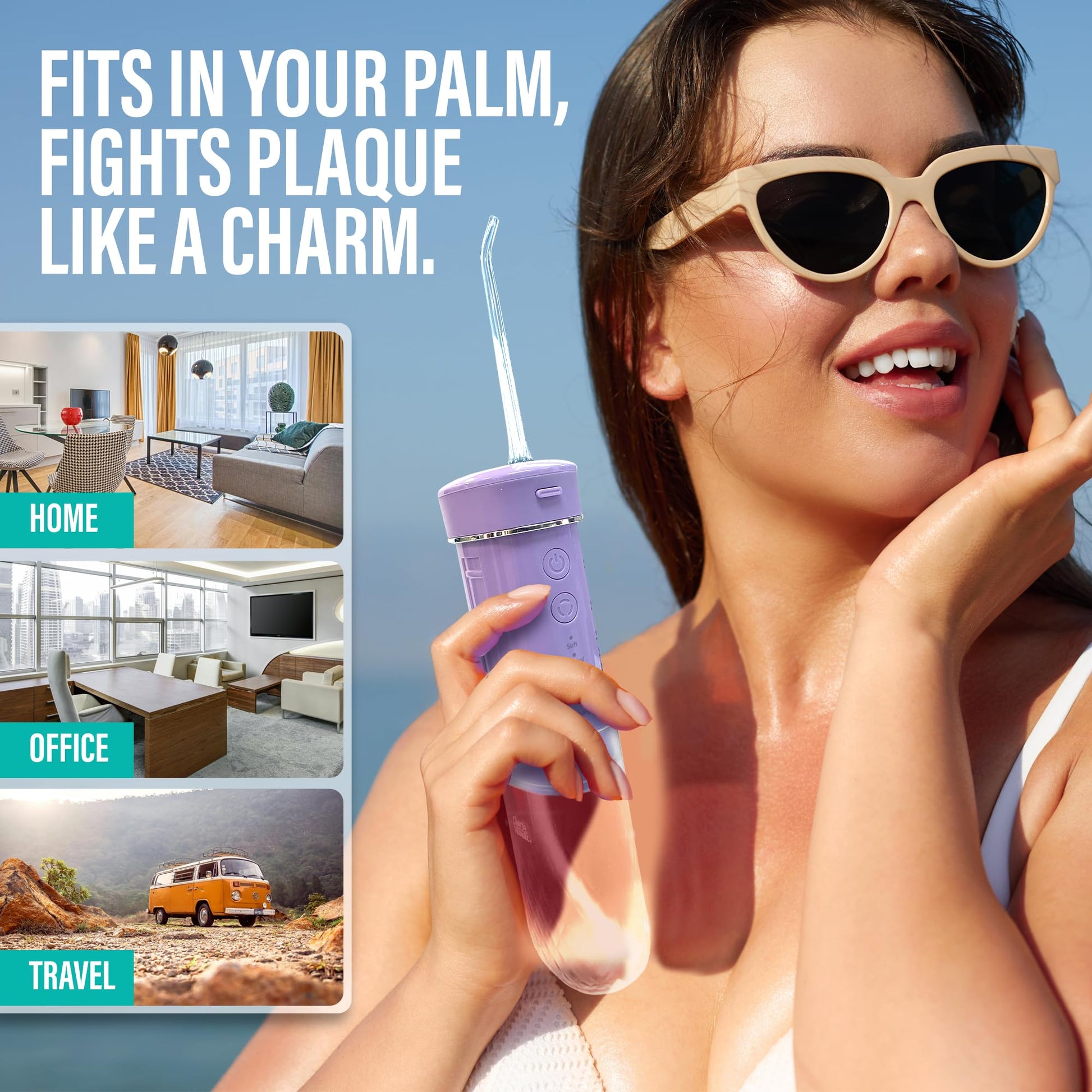 GuruNanda Compact Water Dental Flosser, Portable Travel Size Oral Irrigator Flosser with Collapsible 180 ml Tank, Smart Timer, 4 Flossing Modes, TSA-Approved - Lavender