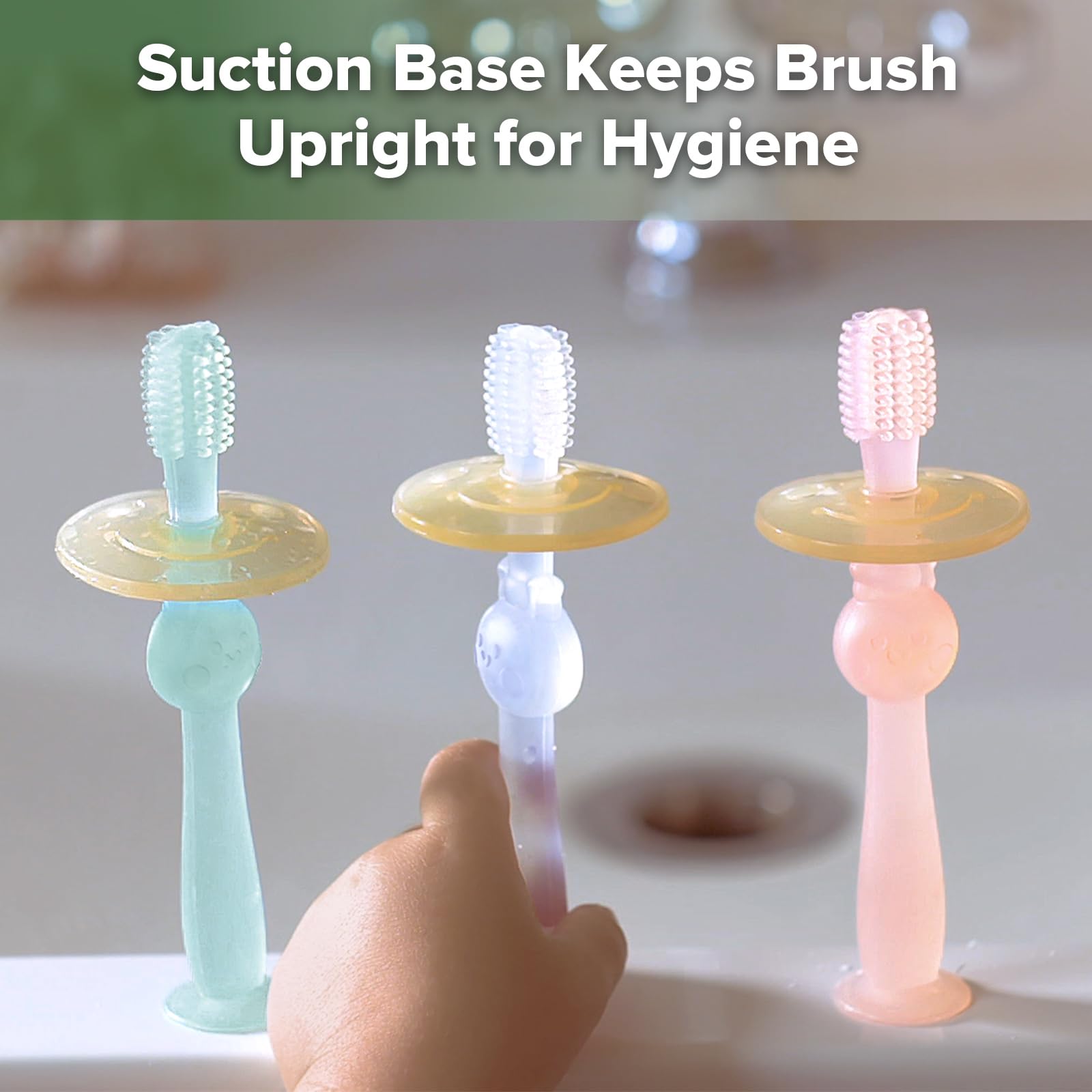 - INSTILL EARLY ORAL HYGIENE ROUTINES: The perfect ‘first toothbrush’ to set up good brushing habits from an early age. Suitable to use even before baby’s first teeth emerge.