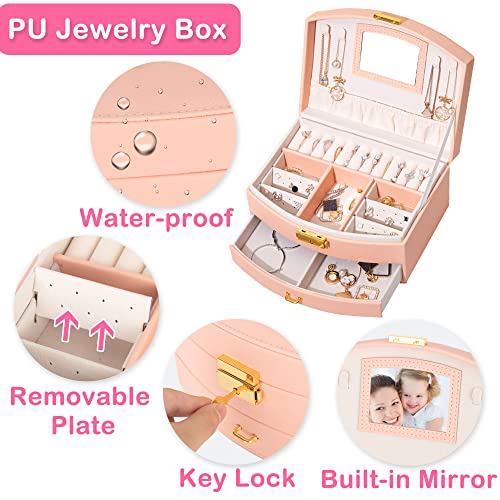 - ¡¼Large two-Layer Jewelry Box¡½Our jewelry organizer box(7.9*6.1*4.1 inch¡¢ 2.1lb) is portable and high quality. Premium PU leather with soft velvet interior£¬double layers and removable dividers design£¬give a safe and large home to girls jewelry (hair styling accessories£¬necklaces, bracelets, earrings, and other keepsakes) .