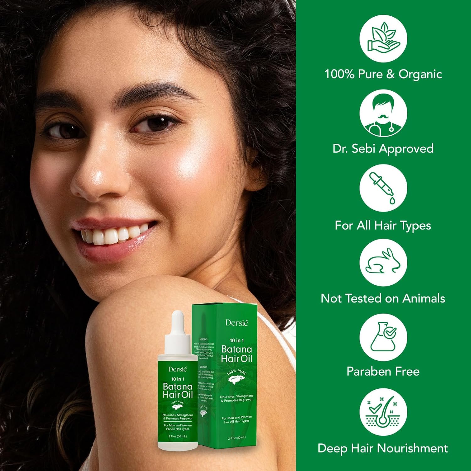 - 100% Pure & Natural Batana Oil: Experience the pristine quality of Dersie Hair Growth Oil, featuring Batana Oil sourced from Honduras and extracted using traditional cold-pressing methods. This ensures a 100% pure and natural formula packed with essential nutrients.