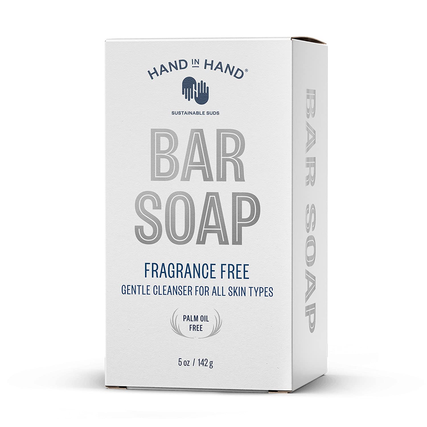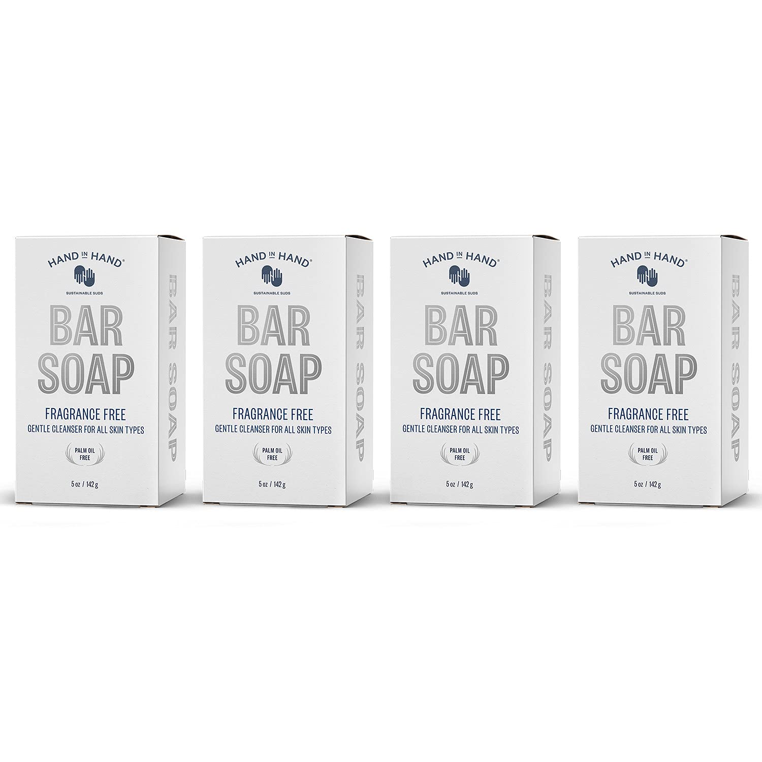 Hand in Hand Bar Soap, Nourishing Cleanser For All Skin Types, Organic Shea and Cocoa Butters, 5 Ounce, Fragrance Free, 4 Pack